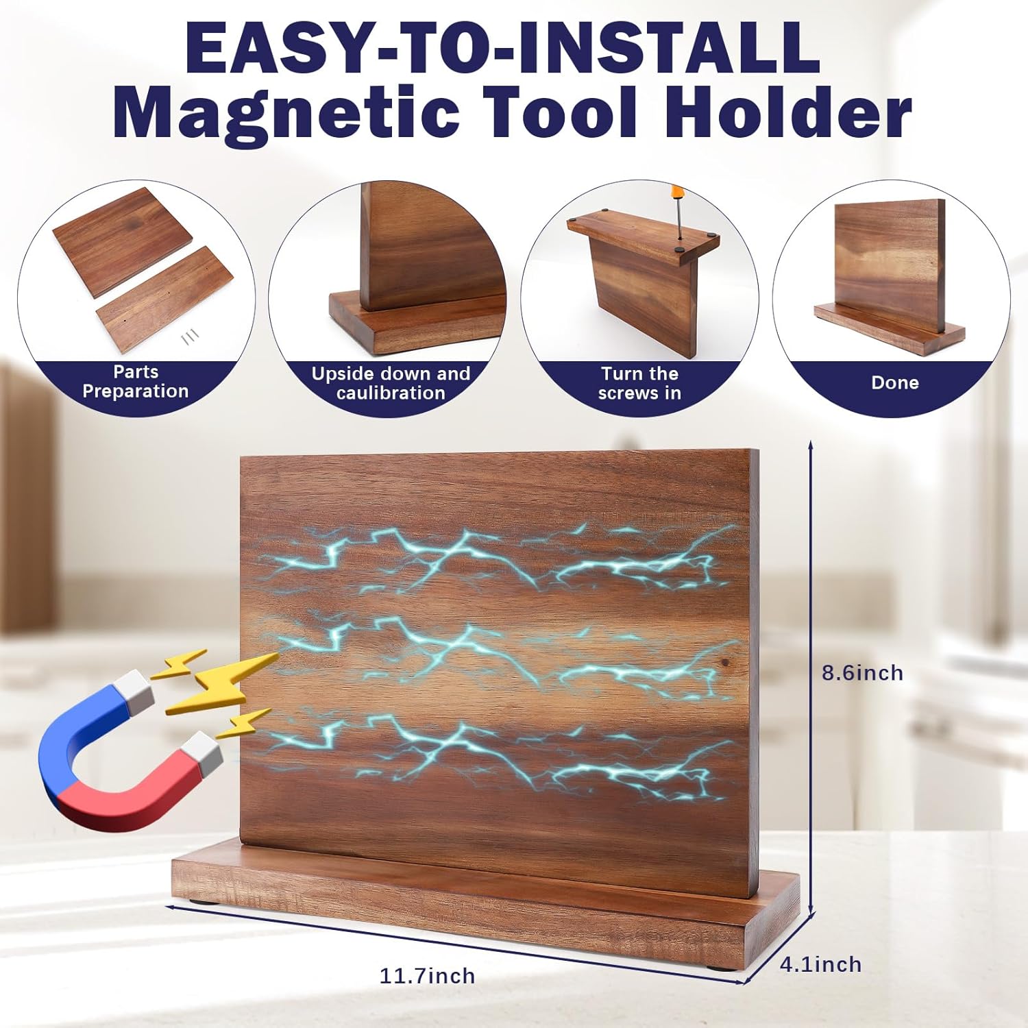 - NATÜRLICHE SCHLICHTHEIT: Der universelle messerhalter verfügt über ein einfaches, aber stilvolles design mit eingebetteten neodym-magneten aus seltener erde in einem akazienholzfach für eine grüne und gesunde küche.