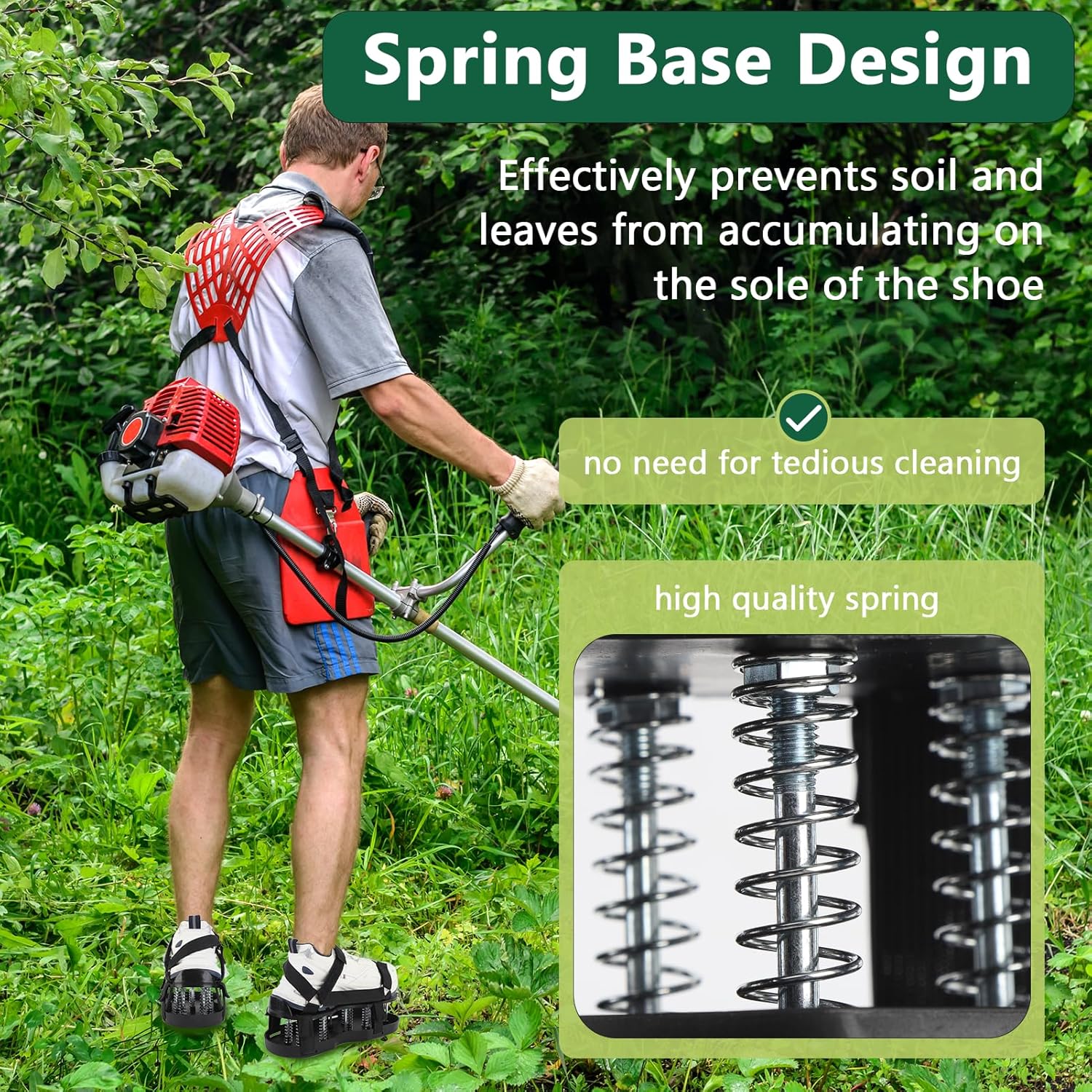 - FEDERBODENDESIGN: Unsere rasenbelüfter schuhe sind mit einem federboden ausgestattet, der verhindert, dass sich erde und blätter an der unterseite der schuhe ansammeln, während sie ihren rasen belüften, was ihnen mühsame reinigungsarbeit erspart.