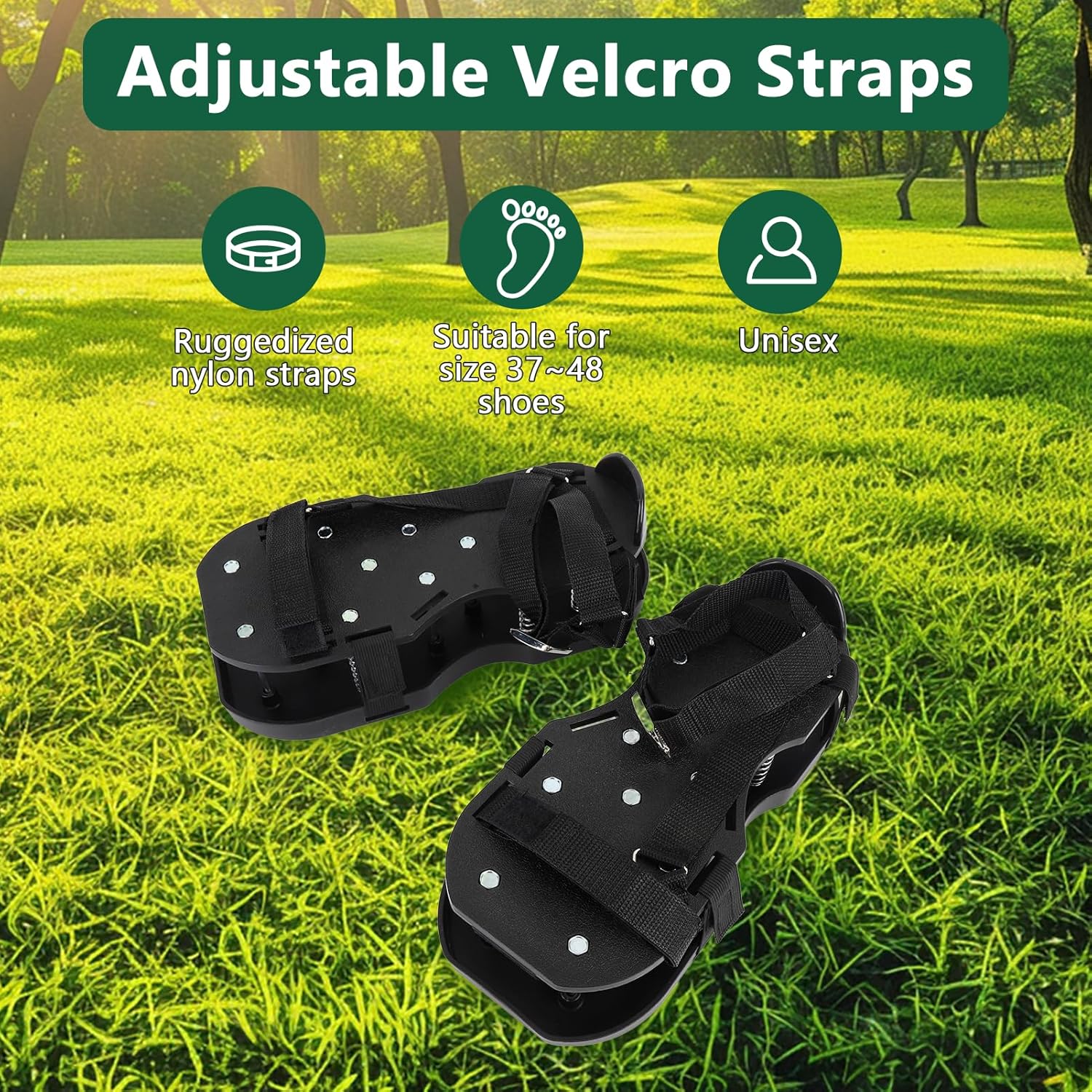 - EINFACH ZU BENUTZEN: Mit ihren robusten, doppellagigen sohlen, reissfesten klettverschlüssen, hochwertigen spikes und sicherheitsmuttern ermöglichen die bodenlockerungsschuhe ein sicheres, stabiles und freies gehen, egal ob sie sich auf dem rasen oder