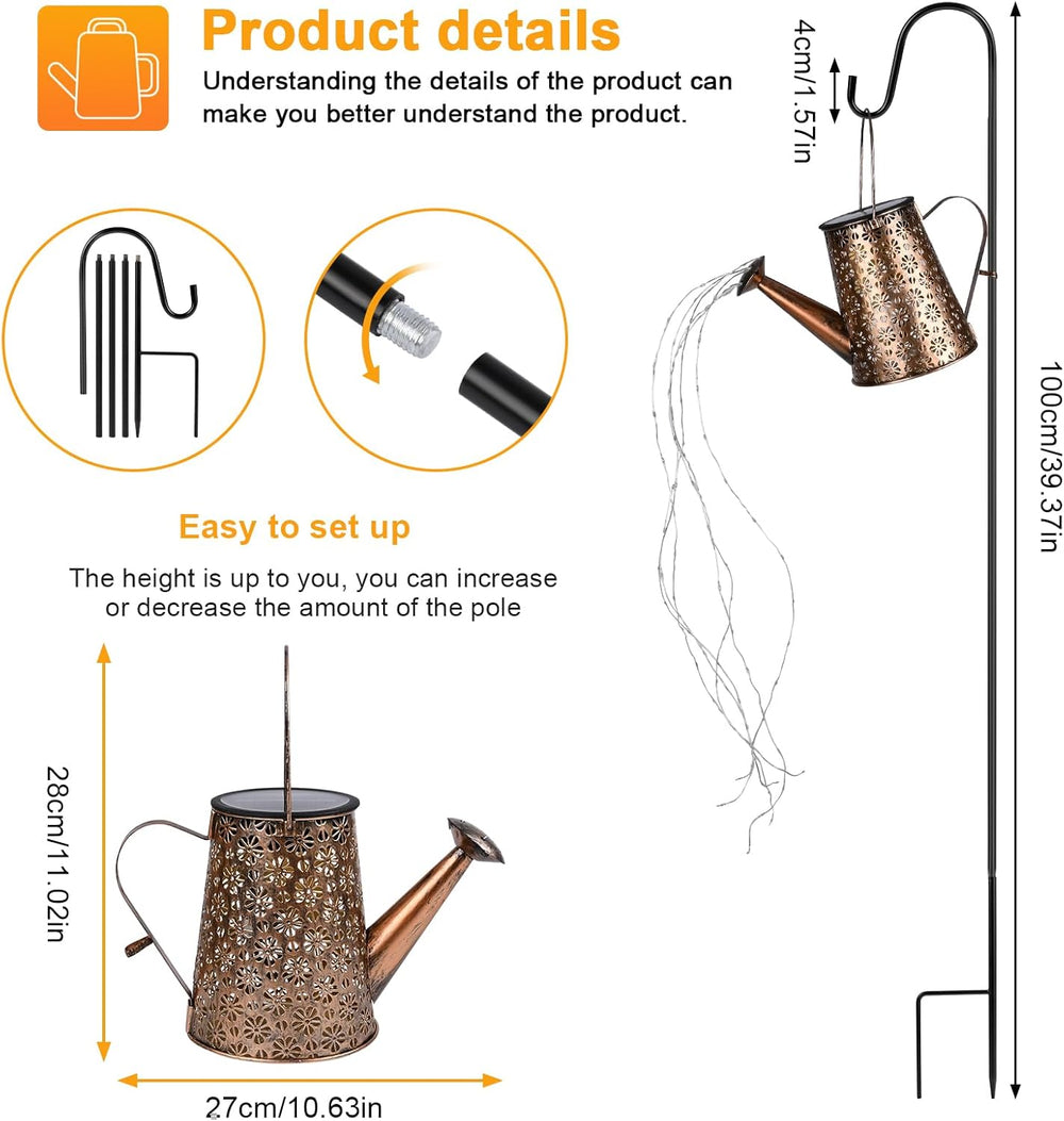- 【IP65 Wasser- und Rostfrei】 Die Solarstern-Topfleuchte mit Lichterkette besteht aus hochwertigem Material, das wasserdicht (IP65) und hitzebeständig ist. Die äussere Schicht der Giesskanne ist mit einer Anti-Rost-Beschichtung ausgestattet, die