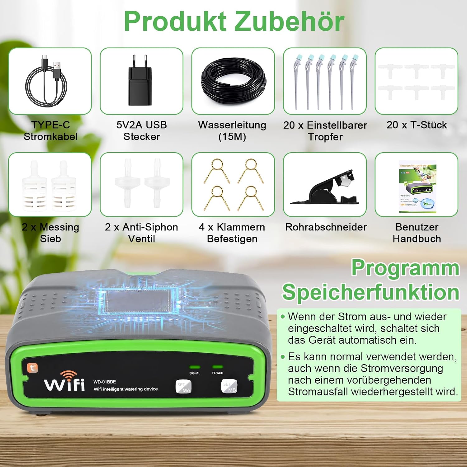 - 💦【WIFI und APP Fernbedienung】Unser intelligentes Tropfbewässerungsset unterstützt die APP-Steuerung über WIFI, mit der Sie die Häufigkeit und Dauer der Bewässerung einstellen können, viel mehr Wasser als mit herkömmlichen