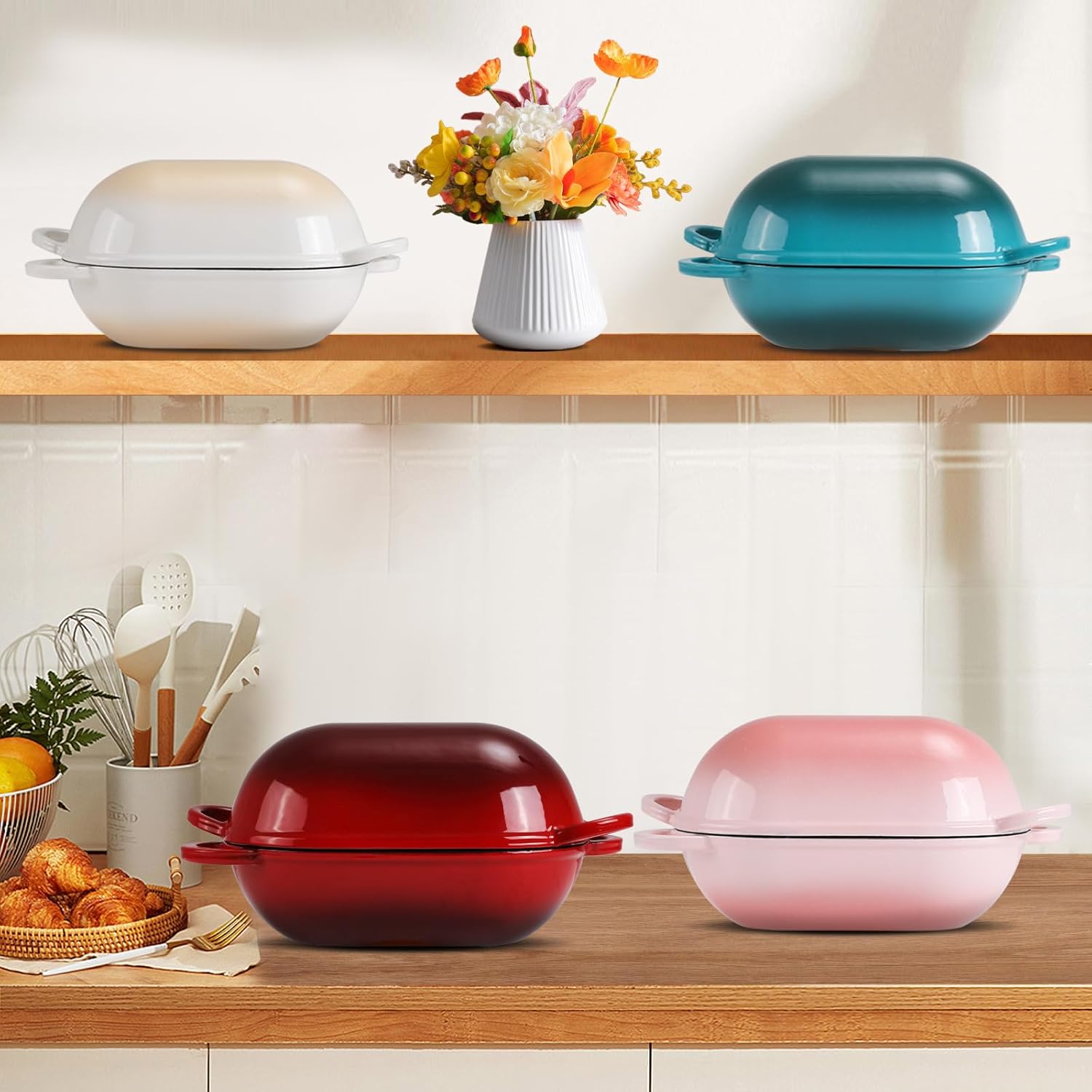 - Gleichmässige Wärmeverteilung: Diese brotbacktopf mit deckel ist aus Gusseisen, das Wärme besser absorbiert, speichert und verteilt als andere Backgefässe für gleichmässiges Backen. Unsere gusseisen topf brot backen haben einen schweren Deckel, der