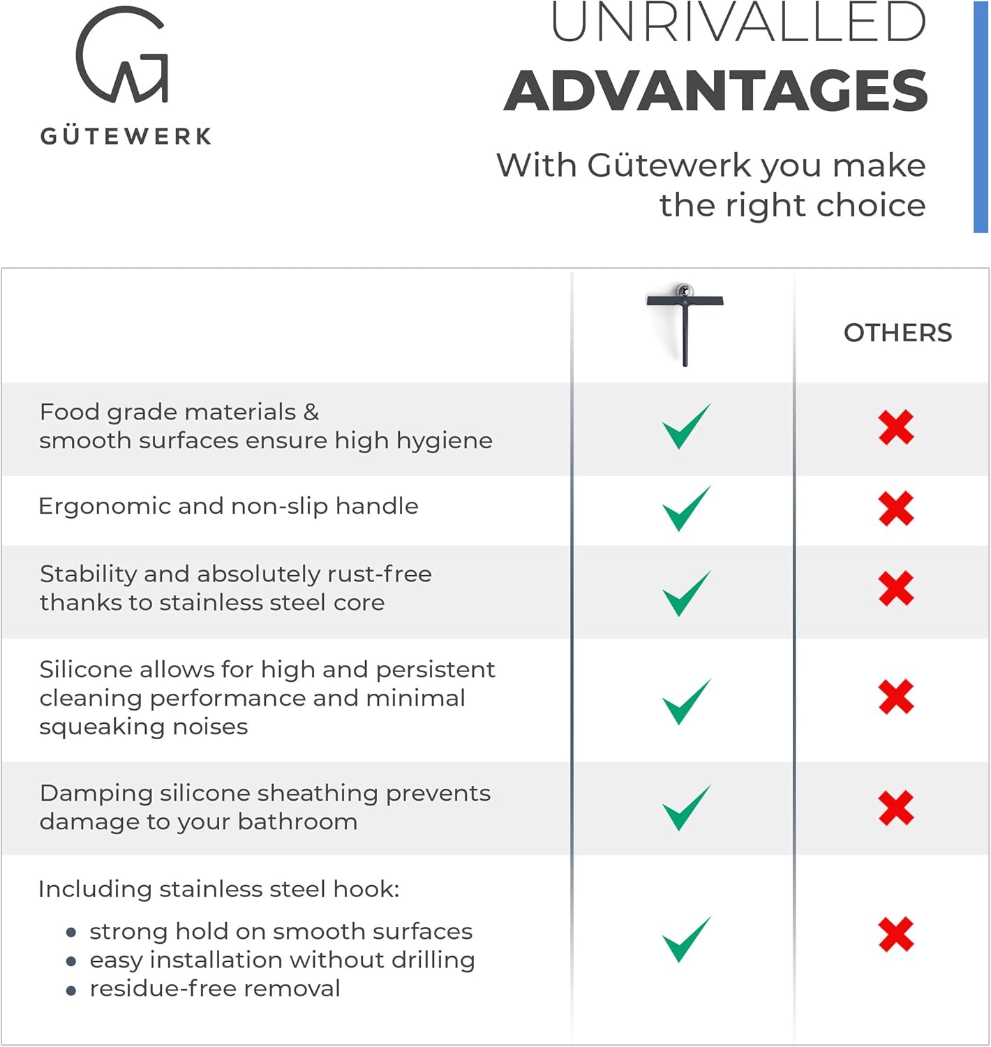 - HÖCHSTE REINIGUNGSLEISTUNG - Die weiche Silikonklinge verringert Quietschen und sorgt für streifenfreie Reinigung. Der Edelstahlkern des Glaswischer garantiert dabei die nötige Stabilität.