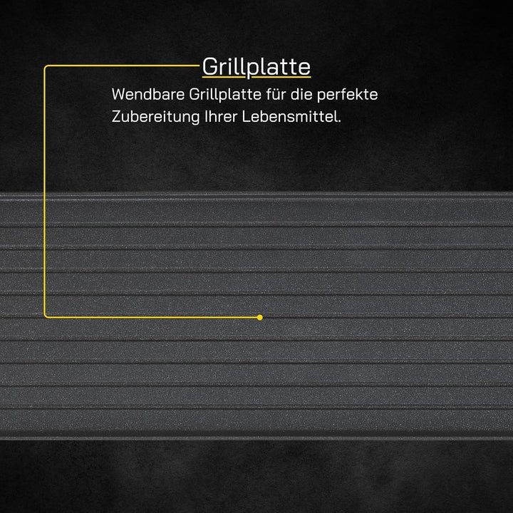 - Vielseitig: 4 antihaftbeschichtete Pfännchen, stufenlose Regulierung und eine wendbare Grillplatte bieten flexible Zubereitungsmöglichkeiten