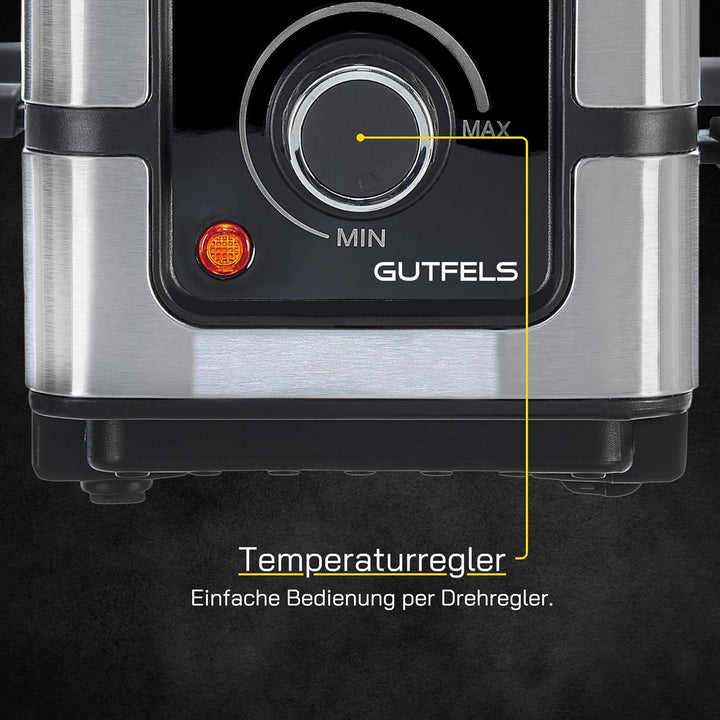 - Praktisch: Antihaftbeschichtung erleichtert Reinigung, während die stufenlose Regulierung volle Kontrolle über die Temperatur ermöglicht