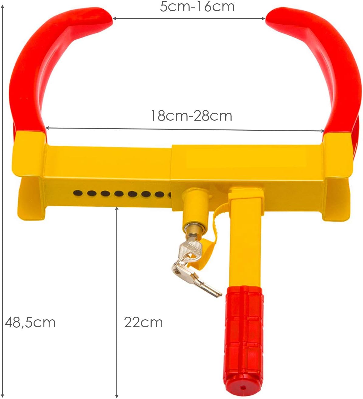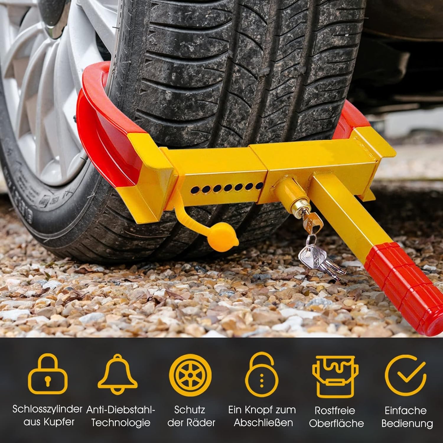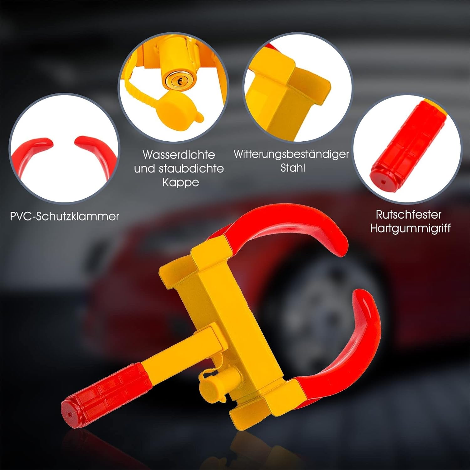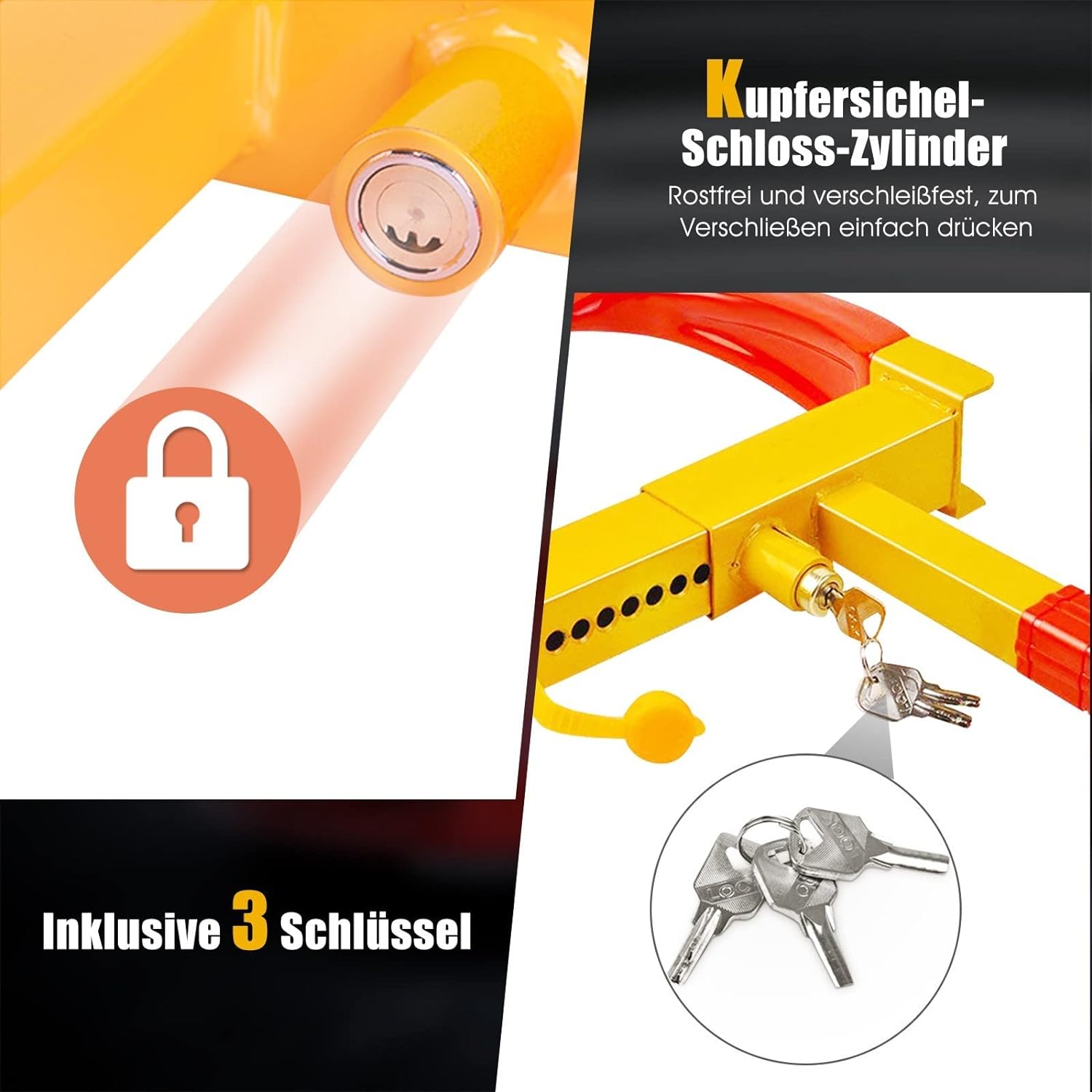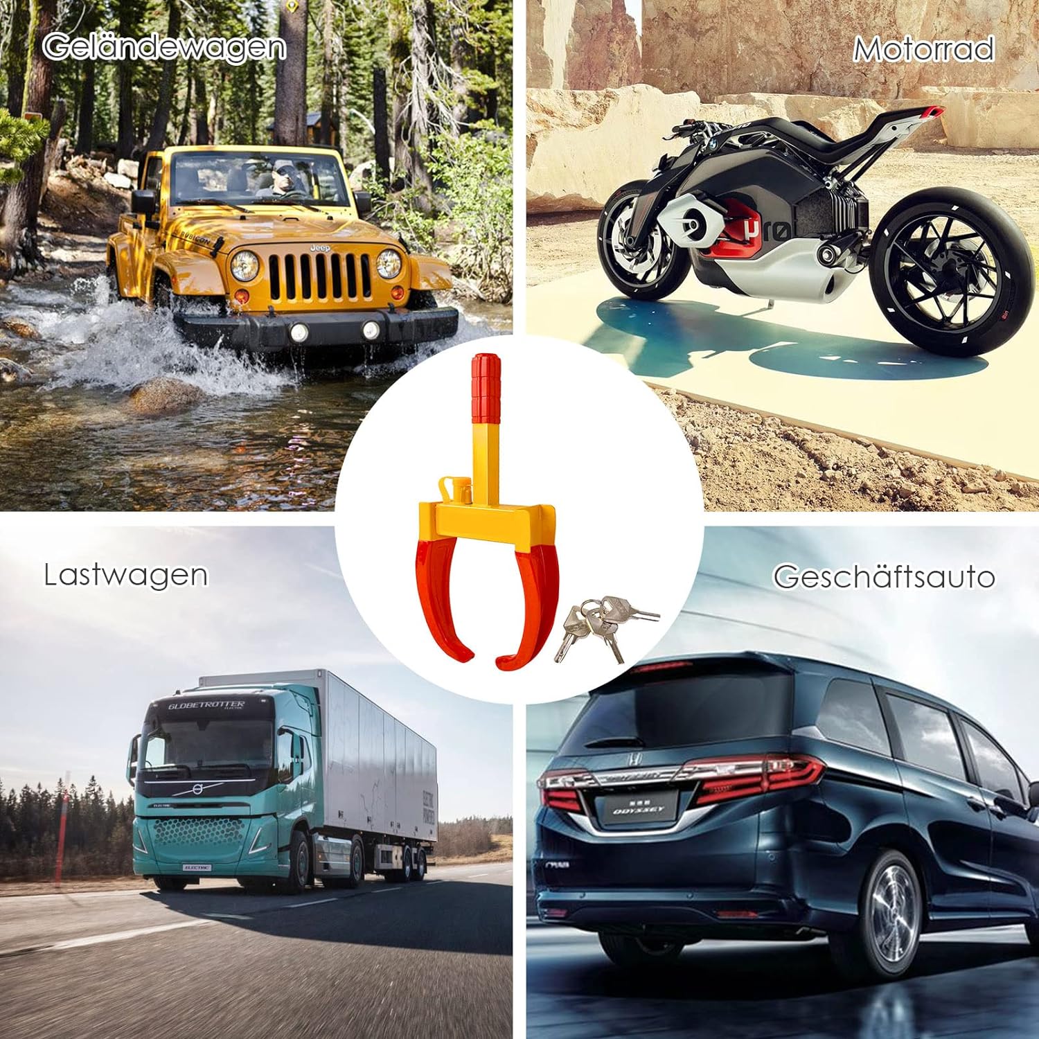 - ﹟ Hohe Sicherheit ﹟ Dieses Reifenschloss verfügt über Schraubstock-Design, das die Räder sicher hält. Um den Verlust von Schlüsseln zu verhindern, werden drei Schlüssel zur Verfügung gestellt, sodass Sie sich keine Sorgen um die Sicherheit
