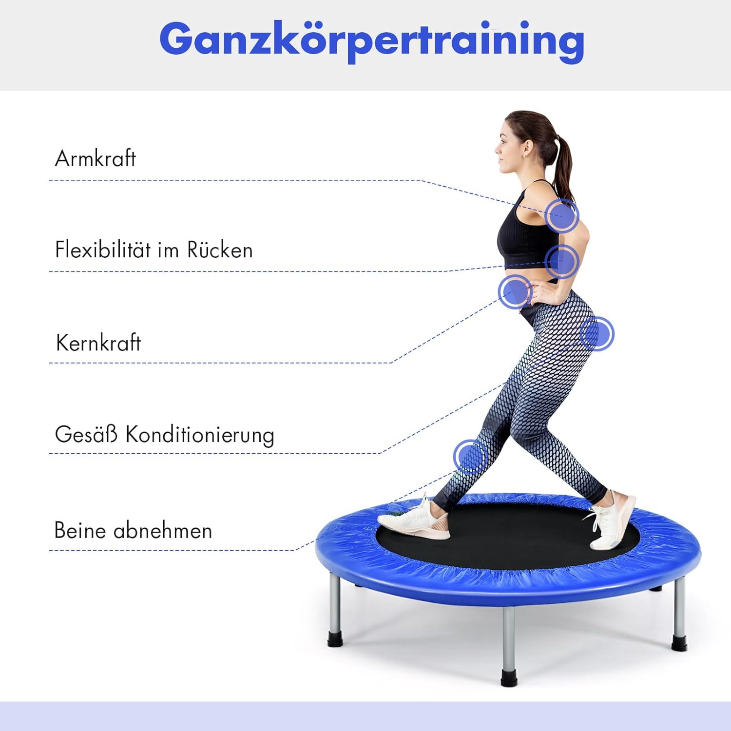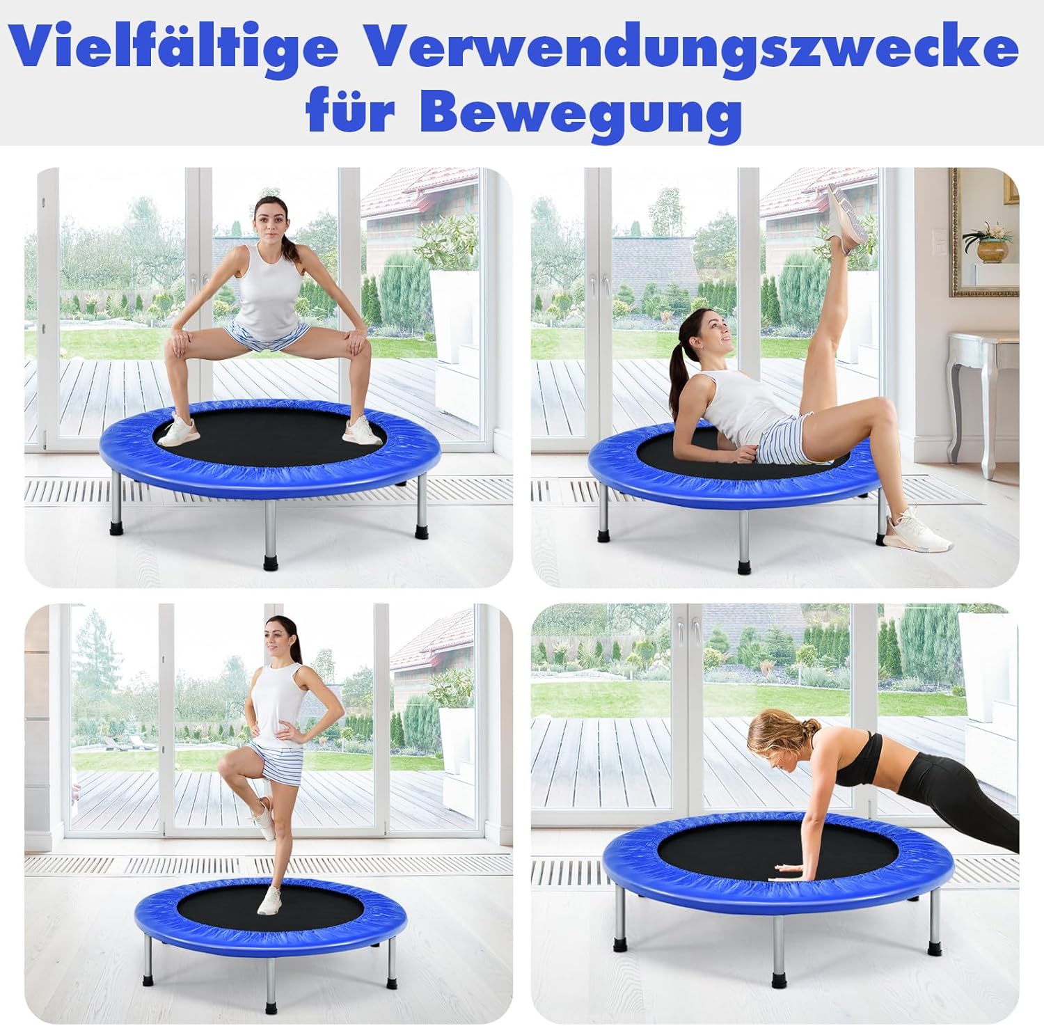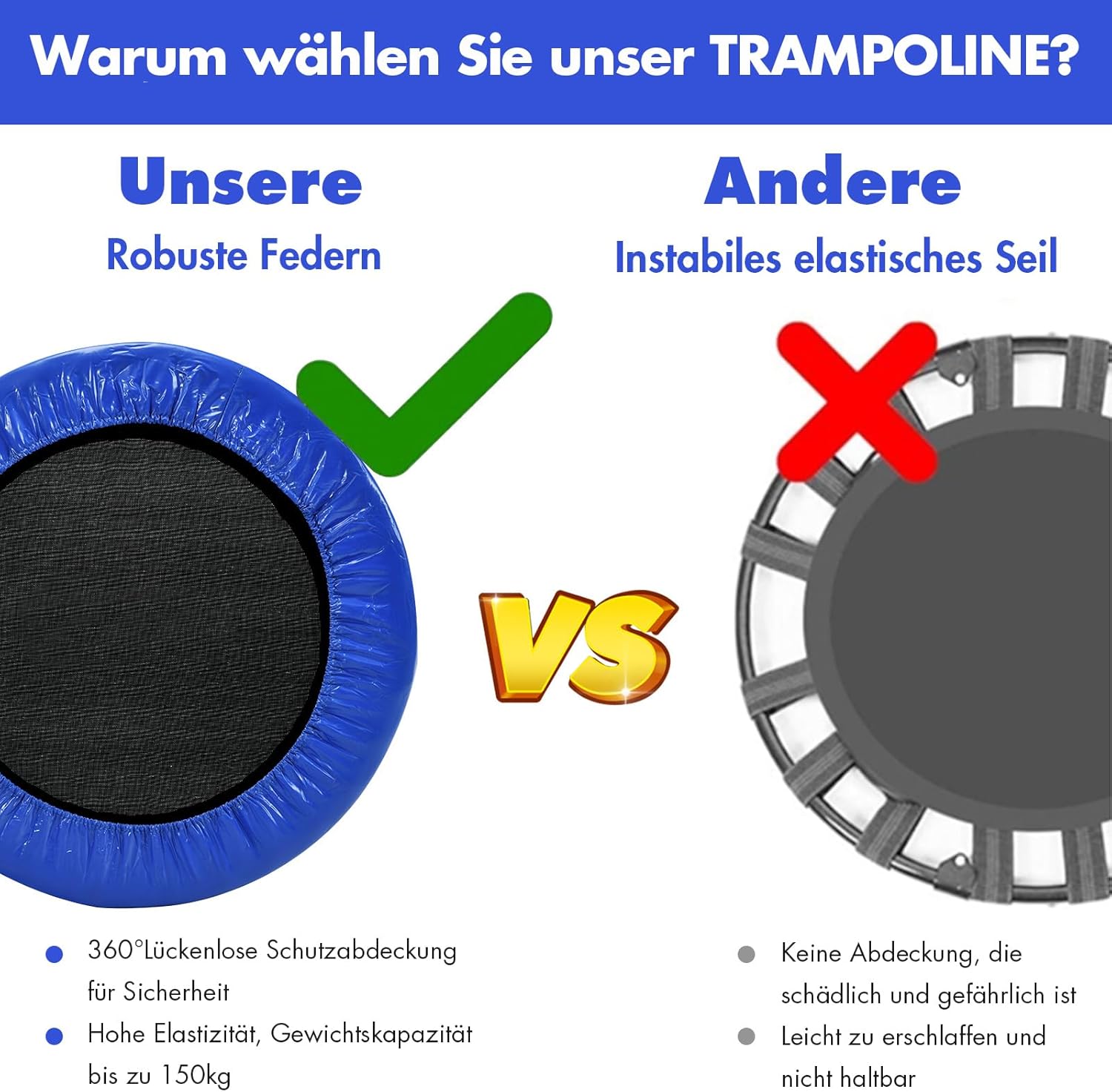 - ﹟ Vielseitig anwendbar ﹟ Durch die hohe Belastbarkeit von 150 kg kann dieses Fitnesstrampolin nicht nur für Kinder, sondern auch für Erwachsene genutzt werden. Mit Trampolin-Training trainieren Sie nicht nur Ihr Gleichgewicht, sondern nehmen auch