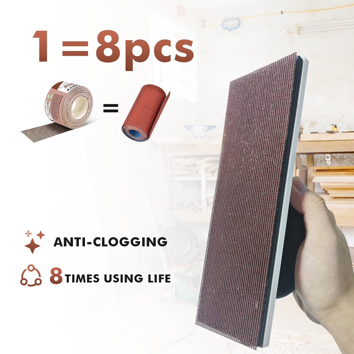 - Hochwertige Schleifpapierrolle: Die Rolle besteht aus robustem Netzschleifpapier mit einer Körnung von 60# und ist ideal zum Schleifen von Holz, Metall und Kunststoff geeignet.