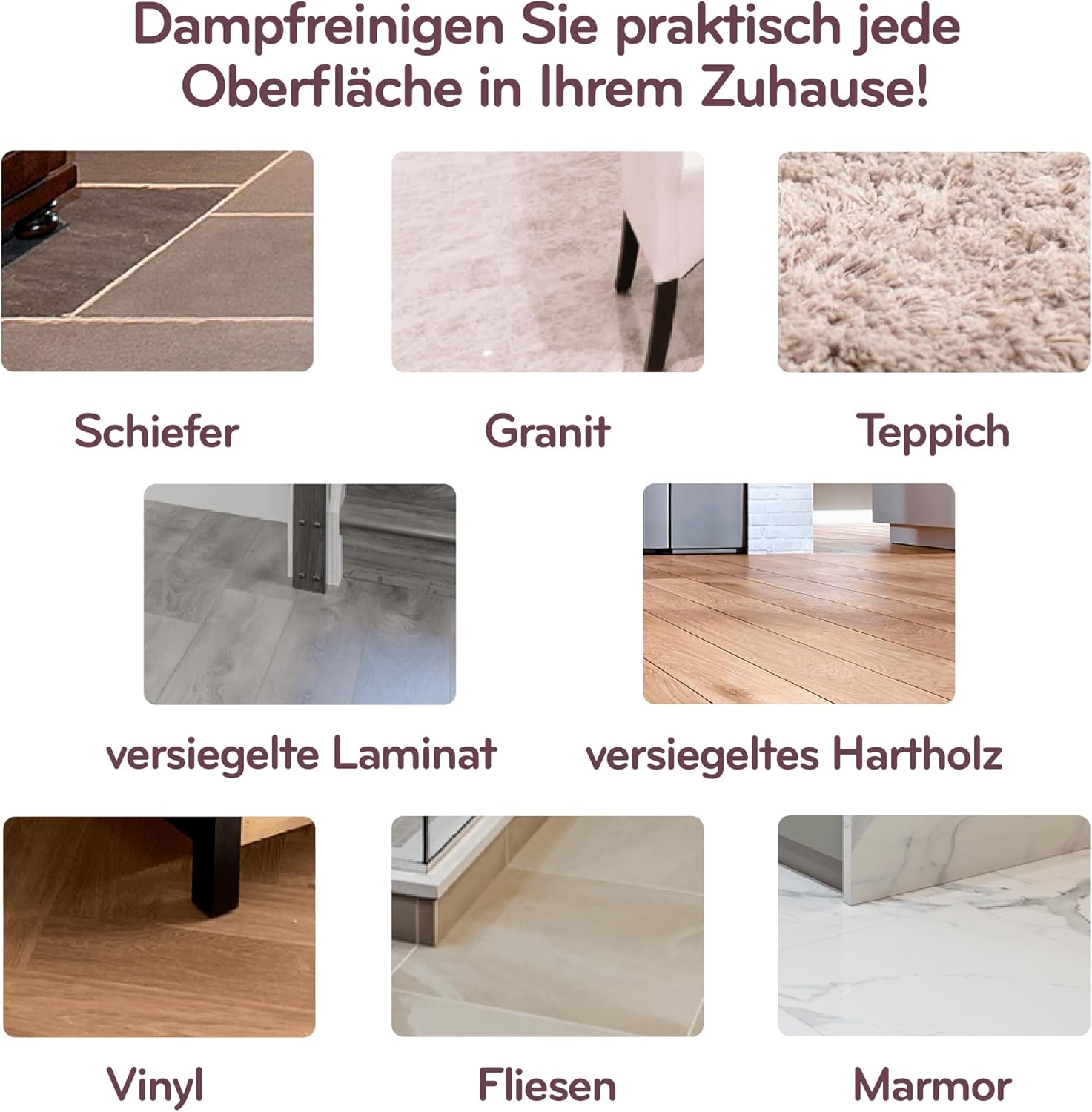 - Unglaublicher 1500 W - macht ihn zu einem der leistungsstärksten Dampfreiniger auf dem Markt. Sein leistungsstarker Dampf kann leicht Schmutz, Schmutz und Bakterien wegblasen und Ihr Zuhause blitzsauber und hygienisch machen. Mit dieser Leistung können