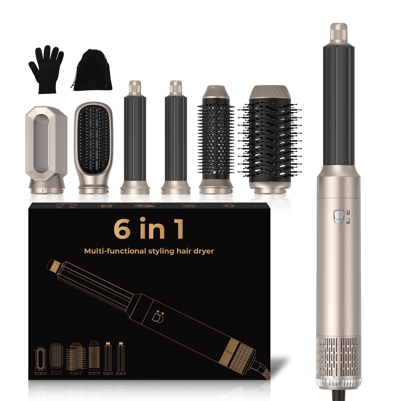 - 6 in 1 Air Styler -Das haarstyler et kombiniert einen Haartrockner mit dem beliebten föhnbürste.Air styler kommen in verschiedenen Zubehörteilen und können bei Bedarf ausgetauscht werden.Schalten Sie mit diesem All-in-One-Hairstyler-Tool die