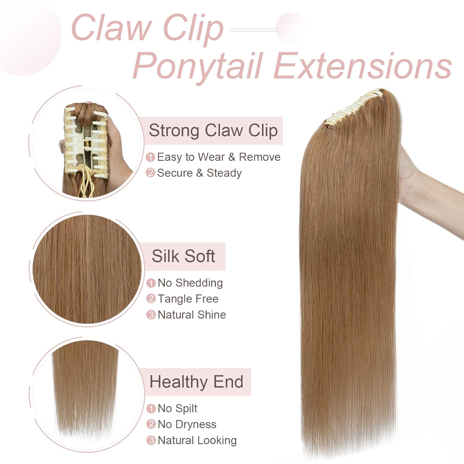- ✿✿ Mit der Klammer kann das Haarteil sehr fest an Ihrem Pferdeschwanz hängen. Mit Passendem Gewicht lässt Sie nicht beschwerlich fühlen, auch wenn Sie es den ganzen Tag tragen.