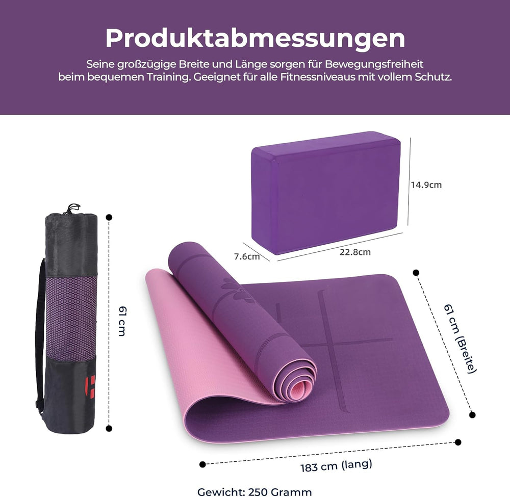 - ๐๐๐๐๐๐๐๐ ๐๐๐๐-๐๐๐๐๐-๐๐๐: Das Yogamatten-Set enthรคlt zwei Yogablรถcke (22,8 x 14,9 x 7,6 cm), einen Yogagurt und einen Netzbeutel mit Kordelzug. Unsere Premium-Sportmatte ist aus hochwertigem,