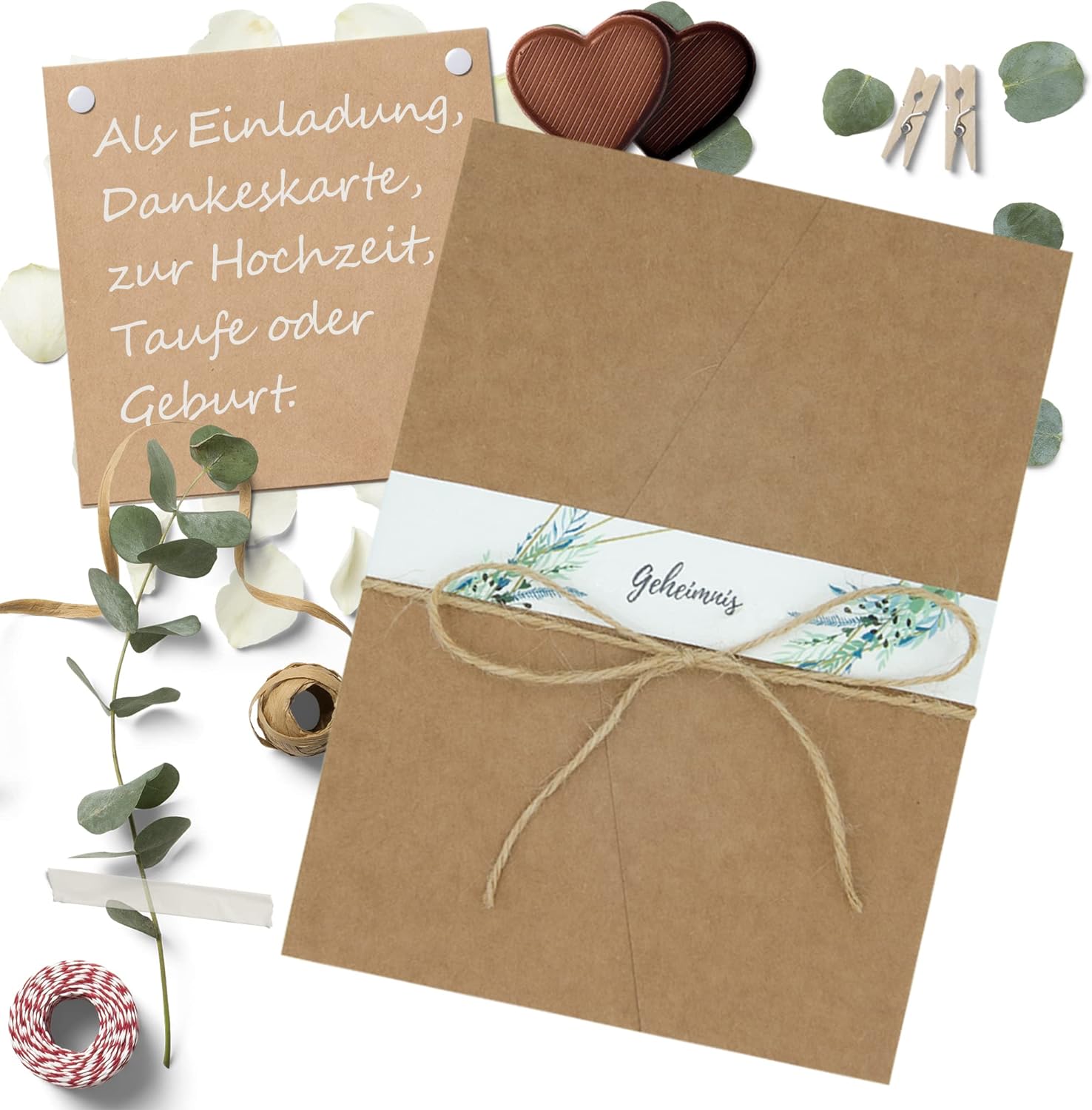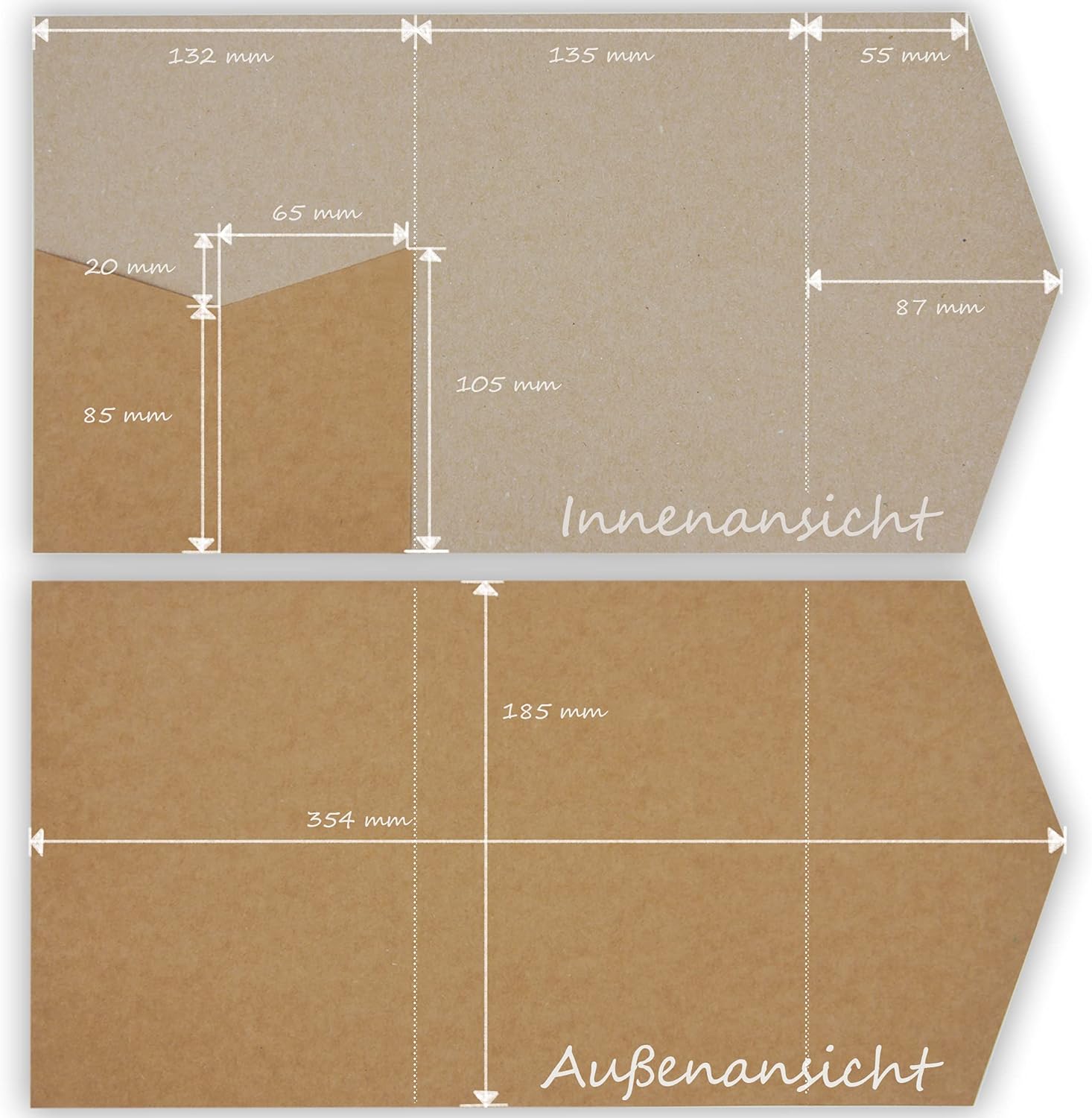 50 Stück Pocketfold Kraftpapier Karten I 135 x 185 mm, 280 g/m² I Hochzeitseinladungen I Taufe I Dan