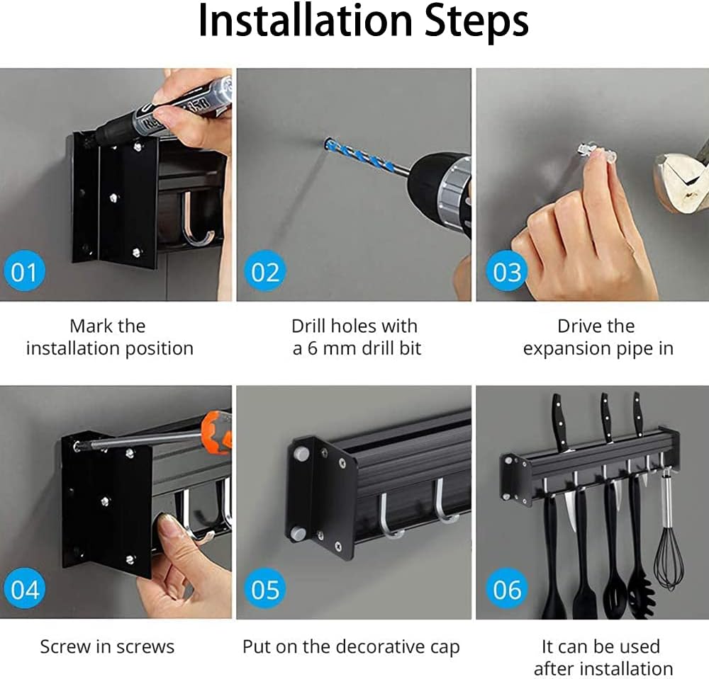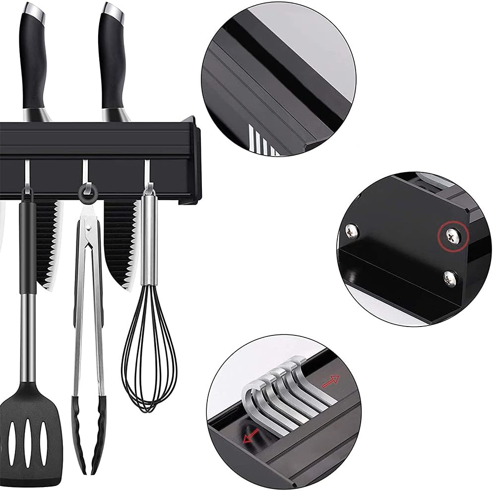 - 【Robust & Heavy Duty】:Um 100% Sicherheit im Gebrauch zu gewährleisten, verwenden wir Schrauben, um den Küchenutensilienhalter zu installieren, der unabhängig von der Grösse von Messern oder anderen Metallwerkzeugen sicher getragen werden kann.