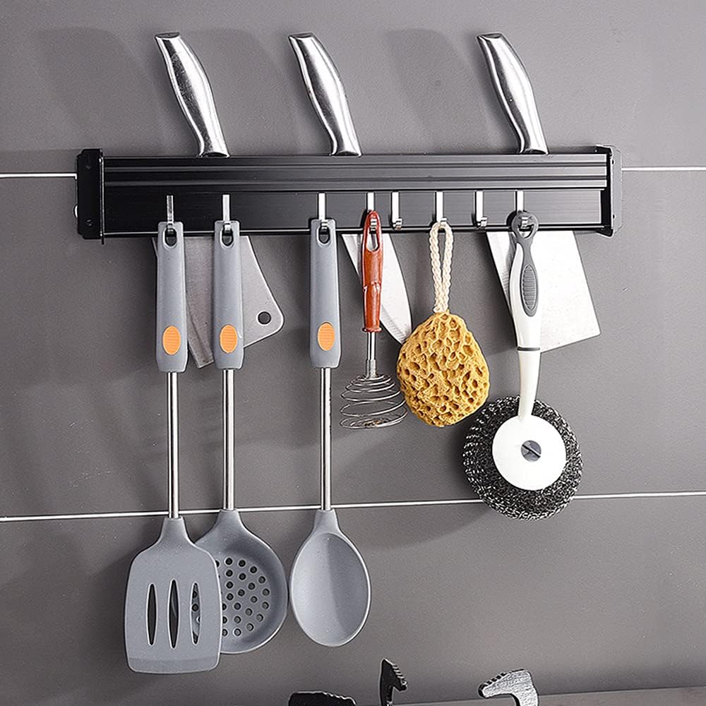 - 【2 in 1 Küchenutensilienständer】:Der Wandmesserständer macht die Küche aufgeräumter. Küchenschienenaufhänger mit 8 Haken zum Aufhängen von Pfanne, Schneebesen, Schneidebrett und anderen Küchenutensilien, die aufgehängt werden können.