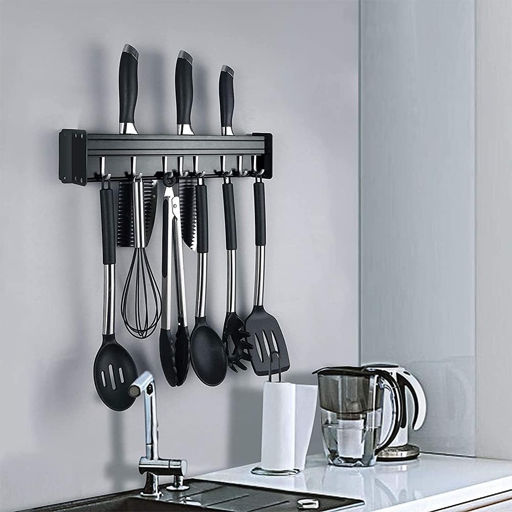 - 【Platzsparer】:Dieser Küchenutensilienständer nutzt den ungenutzten Platz an der Wand Ihrer Küche. Mit 8 voll beweglichen Haken können Sie den Abstand zwischen den einzelnen Haken einfach anpassen.
