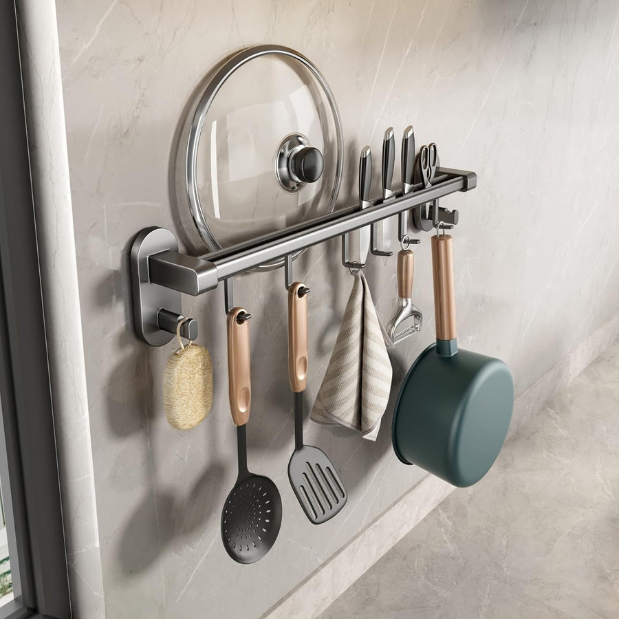 - [𝐌𝐮𝐥𝐭𝐢𝐟𝐮𝐧𝐤𝐭𝐢𝐨𝐧𝐚𝐥𝐞 𝐀𝐮𝐟𝐛𝐞𝐰𝐚𝐡𝐫𝐮𝐧𝐠] An den Küchenhaken lassen sich nicht nur die zum Kochen benötigten Werkzeuge aufbewahren, sondern auch Messer und Topfdeckel, leichte