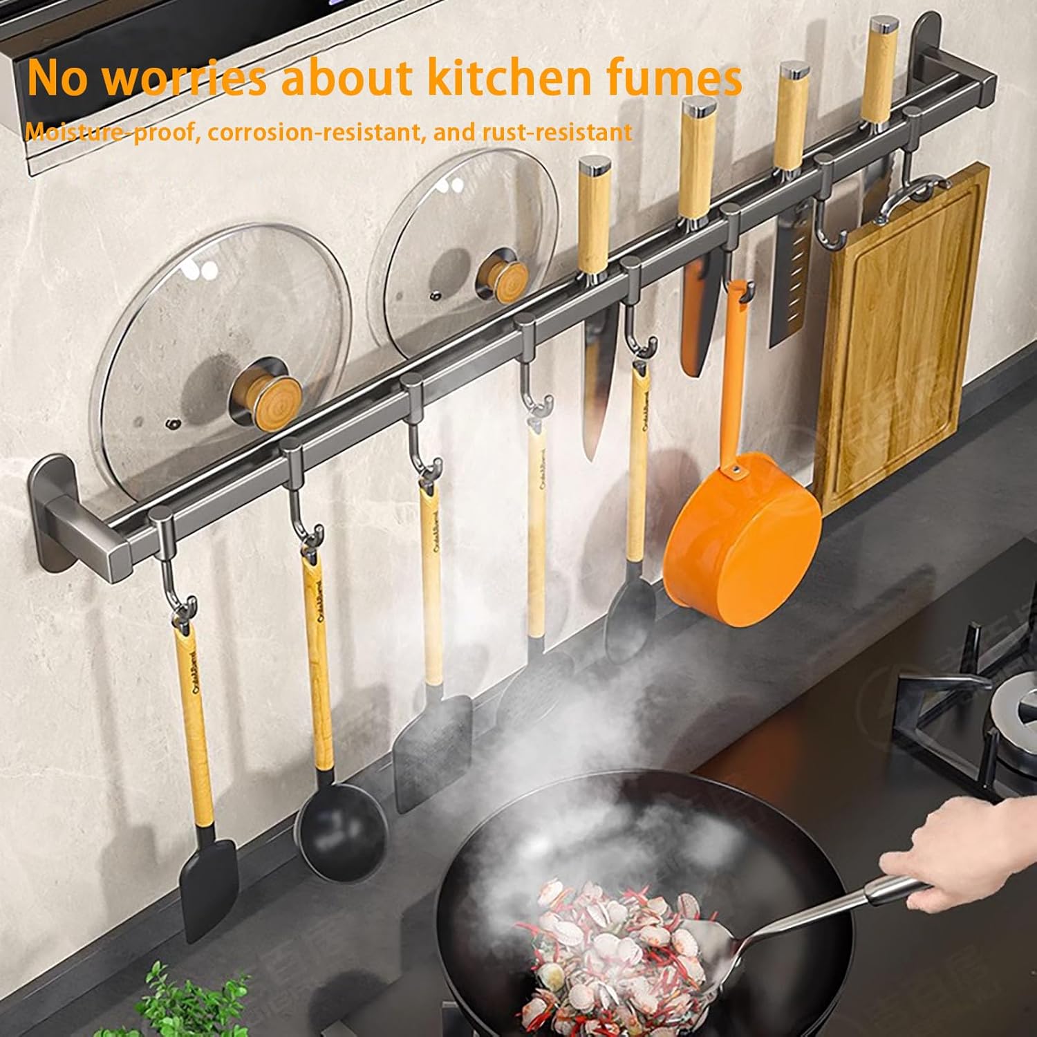- Küchenutensilienhalter Wand: Bietet Platz für diverse Küchenutensilien wie Töpfe, Deckel, Löffel, spart Platz und hält die Arbeitsfläche ordentlich.