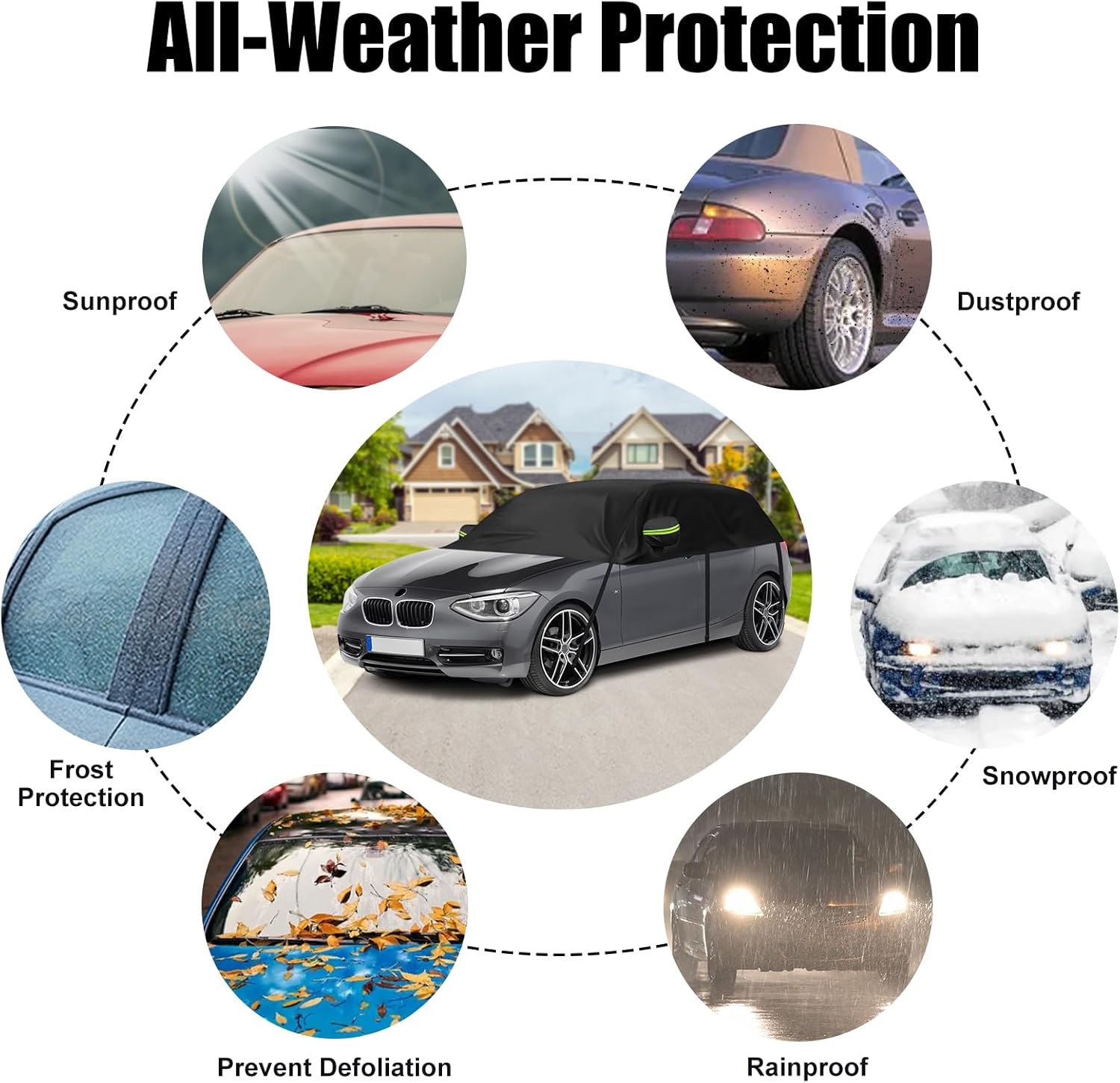 - Rundumschutz: Deckt Windschutzscheibe, Seiten-/Heckscheiben, Rückspiegel ab und schützt Ihr Auto vor Schnee, Frost, Vogelkot, UV-Strahlen, Regen, Staub usw. Ob heisser Sommer, rote Blätter im Herbst oder starker Schneefall im Winter, die