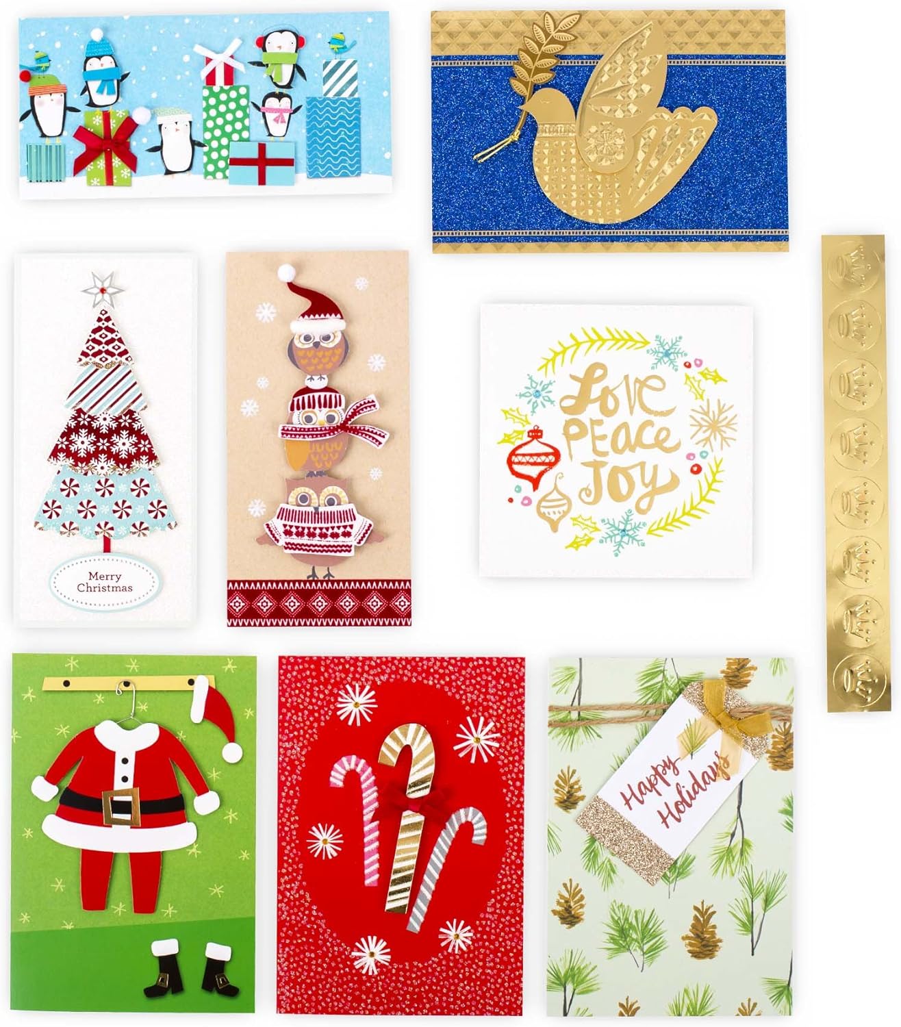 - Premium-Karten verfügen über Designs mit saisonalen Favoriten wie Ornamente, Weihnachtsplätzchen, Rentiere, Strümpfe, Pinguine und mehr. Handgefertigte Weihnachtskarten enthalten auch schöne Verzierungen wie Aufsätze, Schleife, Folie und mehr.
