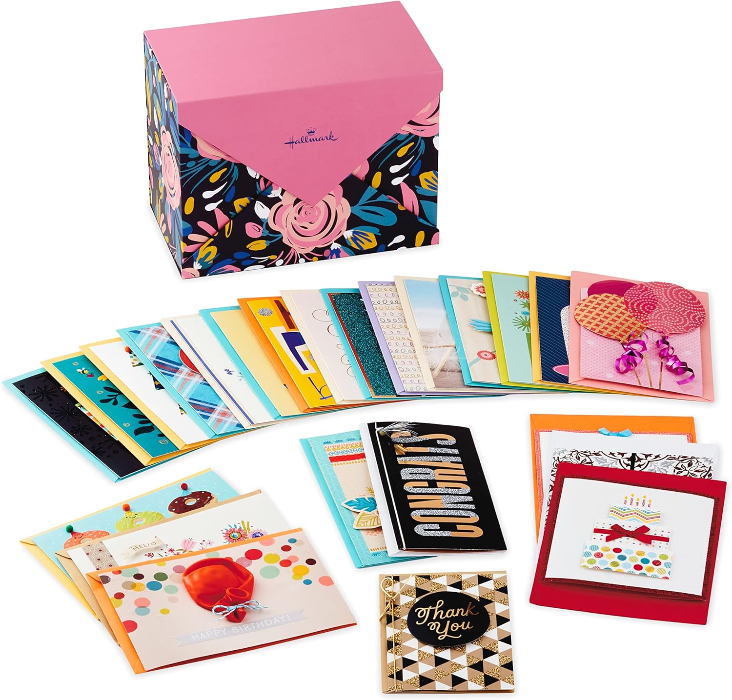 Hallmark 24 Stück handgefertigte Grusskarten in verschiedenen Boxen, modernes Blumenmuster, Geburtst