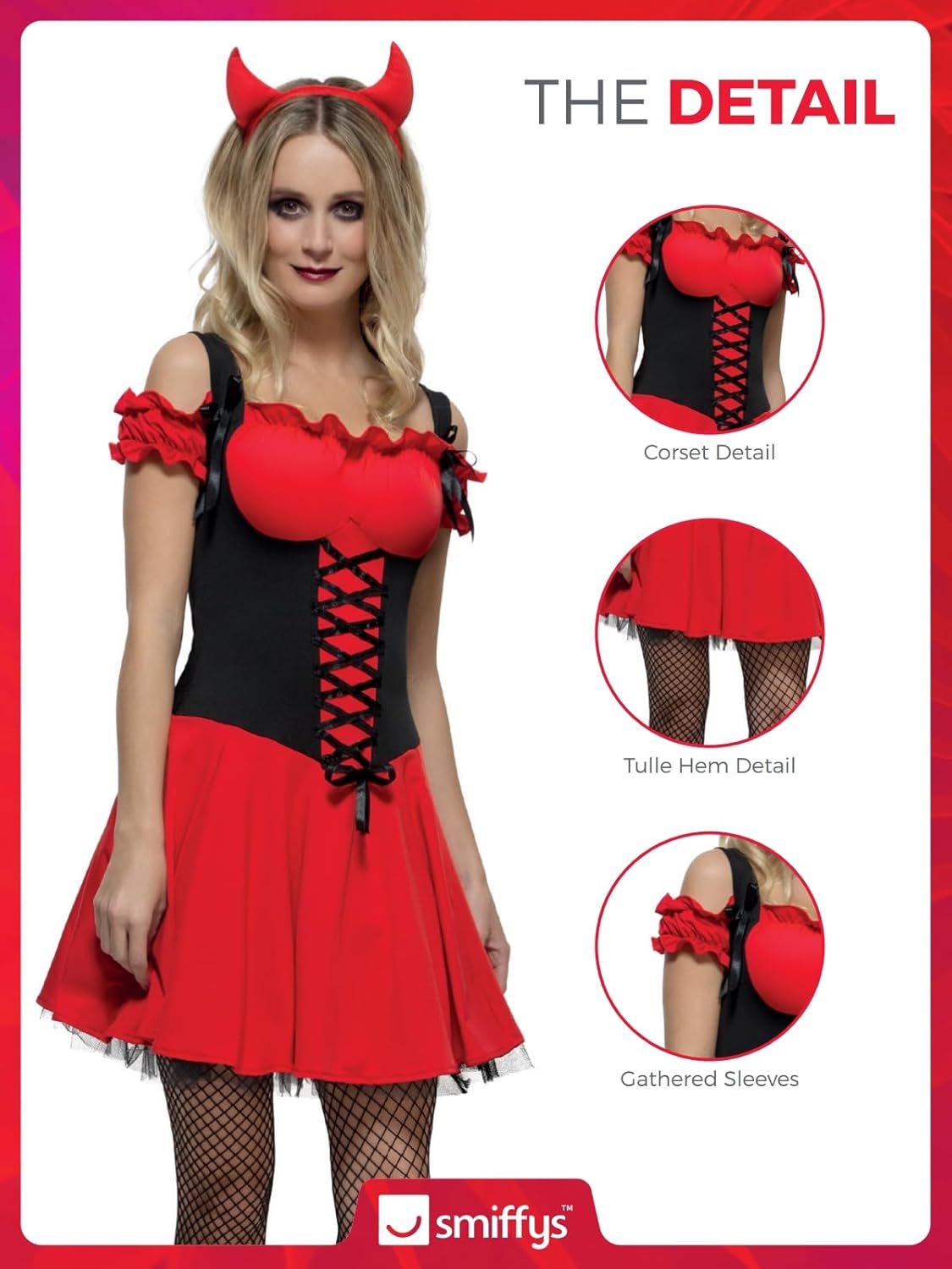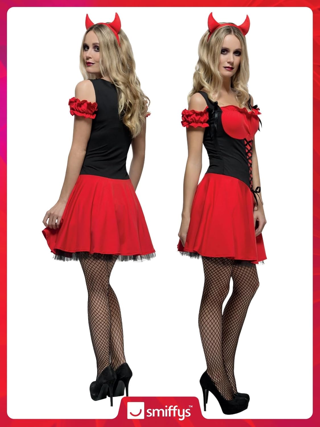 - Lieferumfang: 1 Fever Damen Sündhafter Teufel Kostüm, Kleid mit Unterrock und Hörnern, Beinhaltet nicht: Dreizack, Halskette, Schuhe, Strumpfhose und Armband, Farbe: Rot, Grösse: L