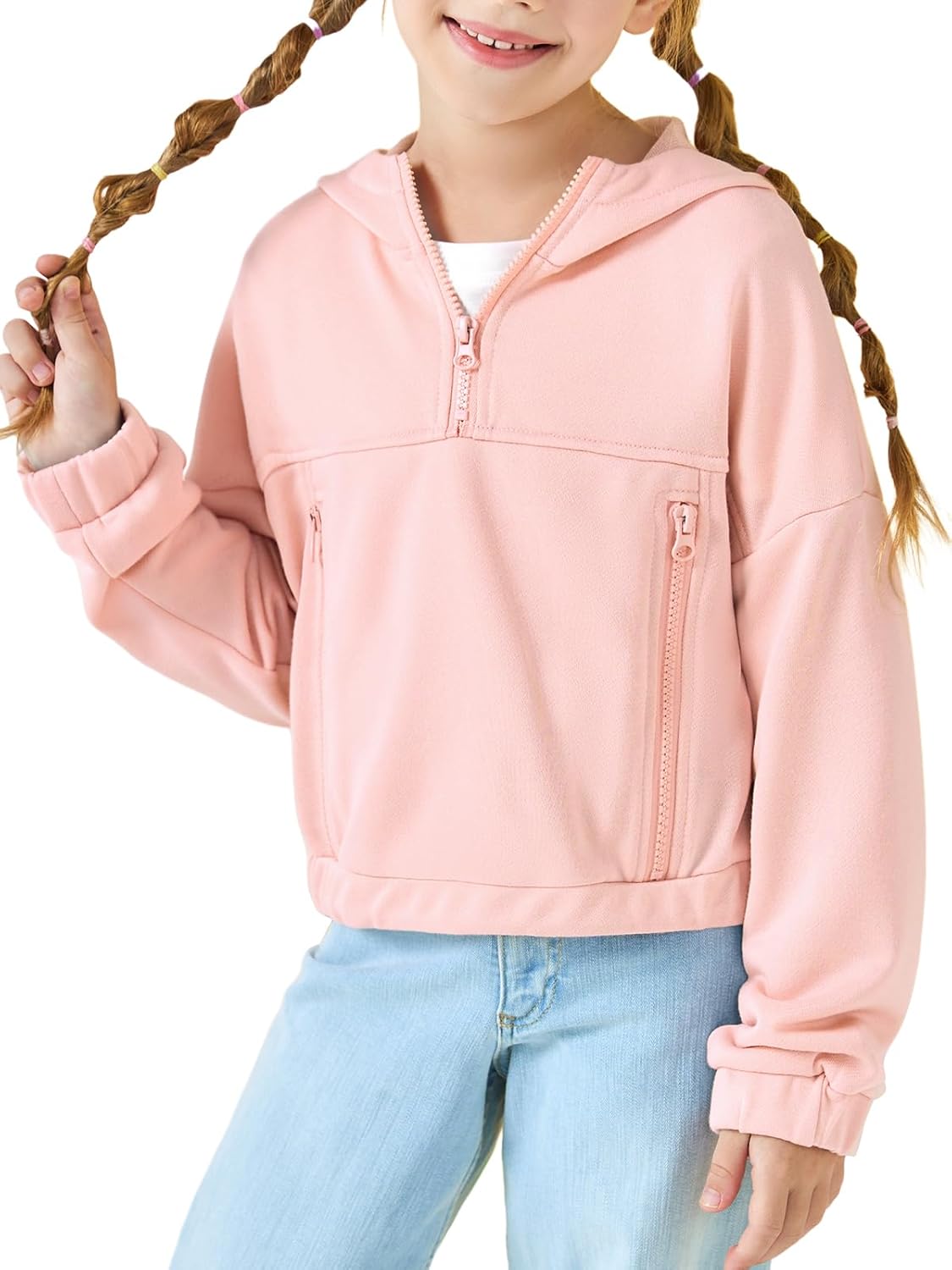 - Features: lange Ärmel, 1/2 Reissverschluss Kragen, Kapuze Hals, einfarbig, Drop Schulter, Kängurutaschen mit Reissverschlüssen, entspannte Passform, plissiert elastische Manschette und Saum, Mode Hoodies für Teenager-Mädchen.