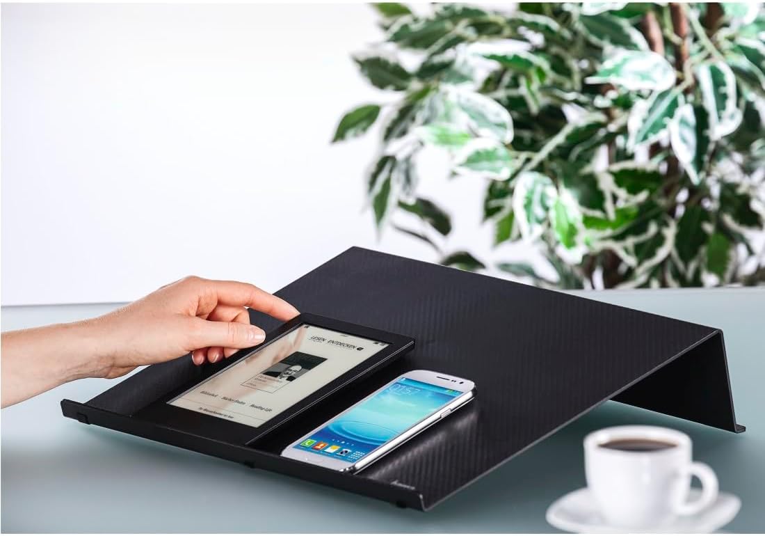 • praktischer Laptop-Stand in edler Carbonoptik mit angenehmem Neigungswinkel