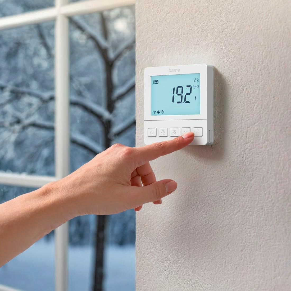 - Smart Home Thermostat: per App über Hama Smart Home-App steuern jederzeit und von überall, per Sprachbefehl zuhause oder manuell direkt am Display, erweitern mit anderen smarten Produkten z.B. Fensterkontakt