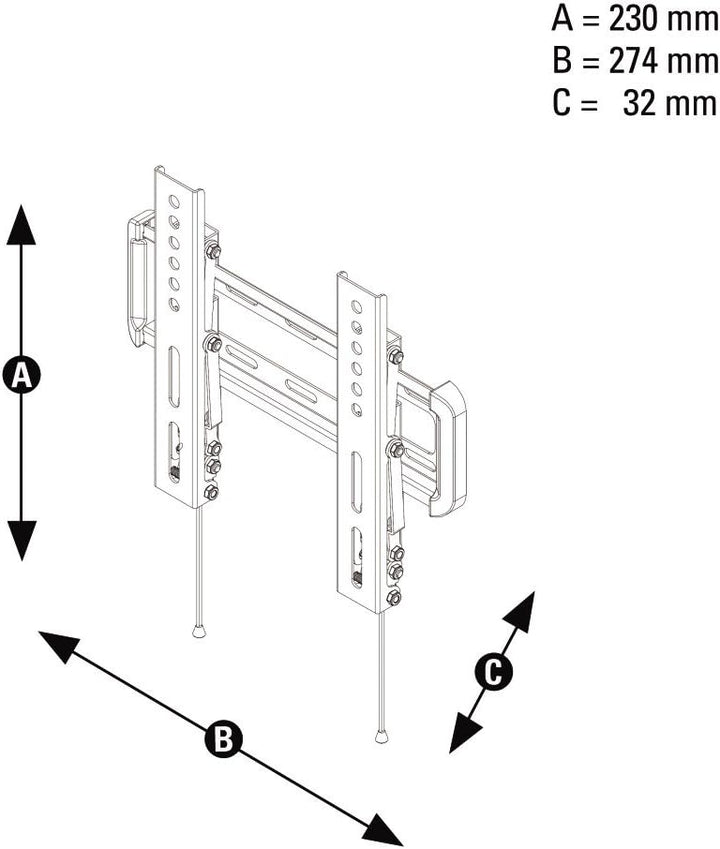 - Easy-Fix-System zur einfachen und stufenlosen Ausrichtung des TV-Geräts, neigbar +0°/-12°, unterstützt alle VESA-Standards bis 200 x 200, Material: Stahlblech, Masse Befestigungsplatte: 27,4 x 9,1 cm (L x B), max. Traglast: 25 kg, 10 Jahre Garantie