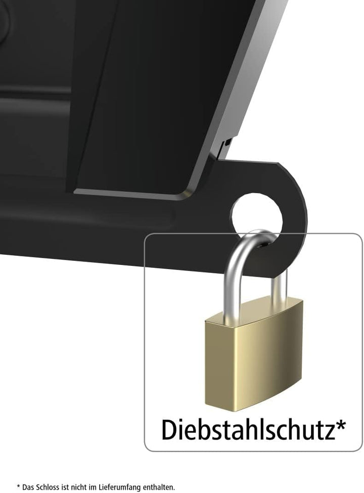 - Halterung mit Diebstahlsicherung: Abschliessbare Wandhalterung ideal für Hotels, Gastronomie, Einzelhandel, Museen (Vorhängeschloss separat erhältlich)