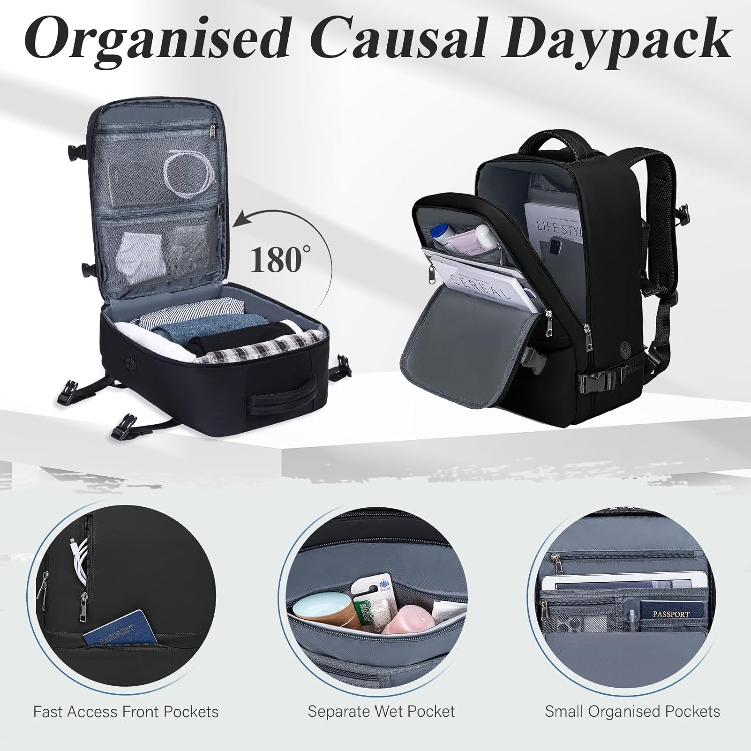 - ✈ 【RUCKSACK FLUGZEUG HANDGEPÄCK】Ontworpen met meerdere vakken om verschillende dingen in op te bergen voor deze reisrugzak. 1 x 180 graden koffer-stijl opening hoofdcompartiment; 2 x grote mesh zakken en 1 x laptopvak in het hoofdvak; 1 x tweede
