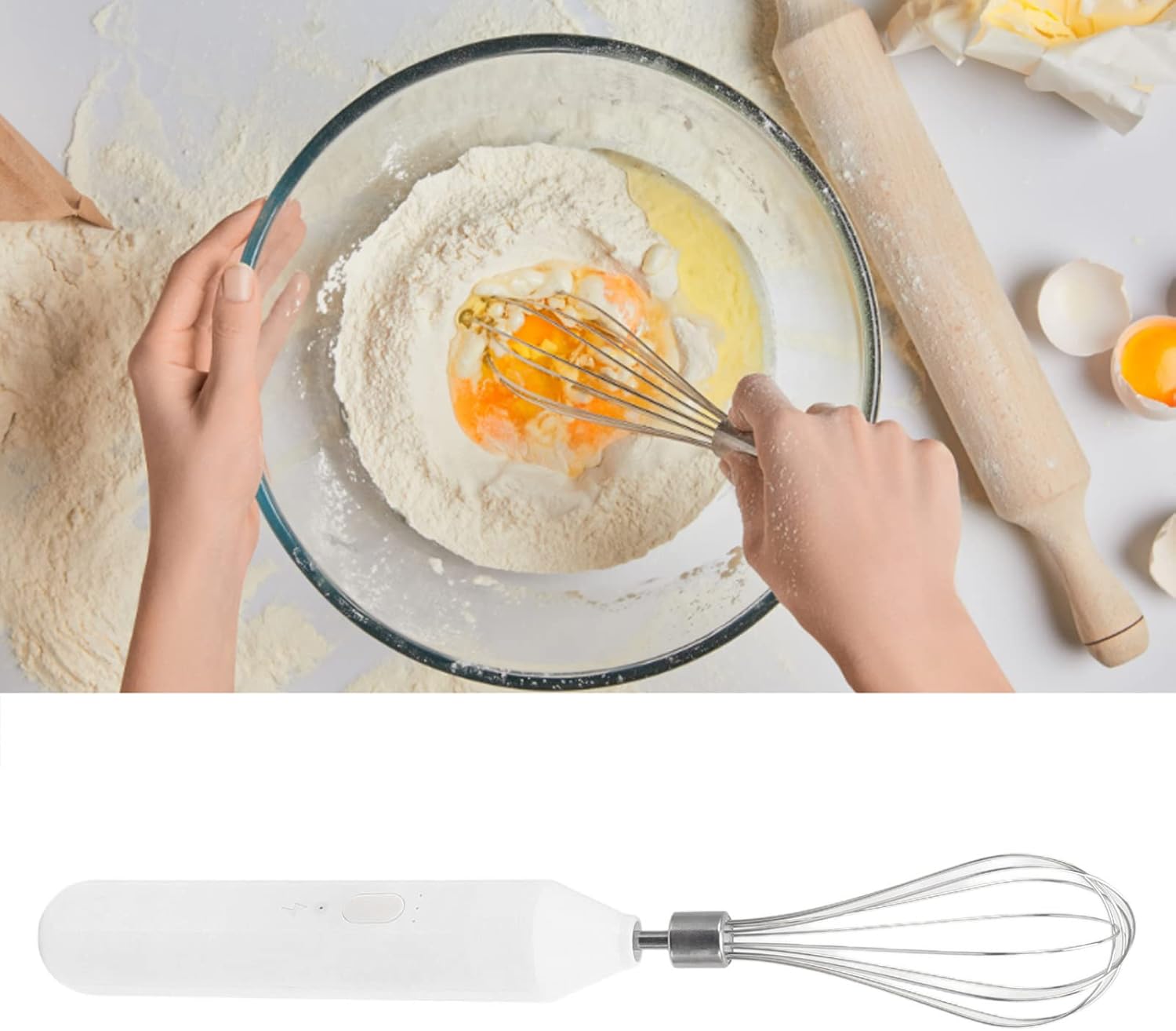 - Batteriebetrieben: Der elektrische Schneebesen wird von einer eingebauten 1200-mAh-Lithiumbatterie betrieben. Und es ist über USB wiederaufladbar und kann nach dem vollständigen Aufladen etwa 90 Minuten lang verwendet werden.