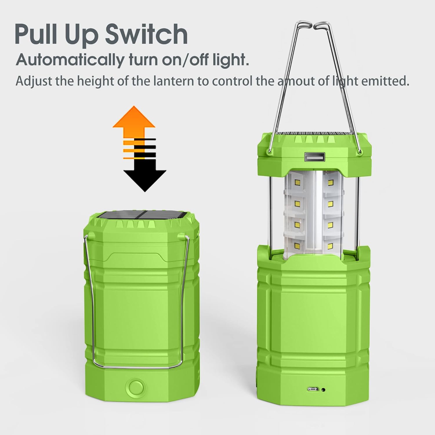 - 💡【Camping Laterne oder Taschenlampe】Die wiederaufladbare Solarlaterne verfügt über vielseitige 2-in-1-Laternen- und Taschenlampenmodi. Wenn Sie als zusammenklappbare Laterne verwenden, ziehen oder drücken Sie einfach am Griff, um ihn einzuschalten oder zu schliessen, und stellen Sie das Licht ein, indem Sie die gezogene Höhe steuern. Der Taschenlampen- oder Lampenmodus kann nach dem vollständigen Aufladen mindestens 30 Stunden lang kontinuierlich beleuchtet werden.