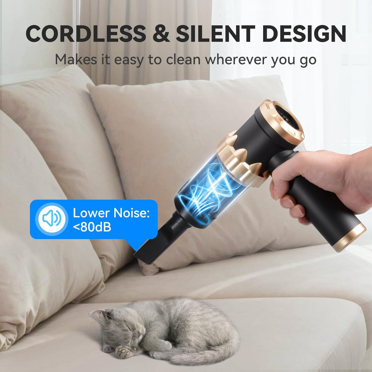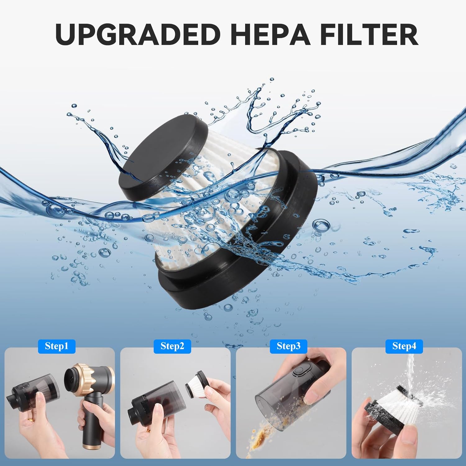 - 22000Pa Handstaubsauger – Dieser Handstaubsauger verfügt über einen 100-W-Hochleistungsmotor mit Turbostromkanal, der eine maximale Drehzahl von 126.000 U/min erreicht und eine starke Saugleistung von 22.000 Pa liefert. Er ist ausserdem mit 3