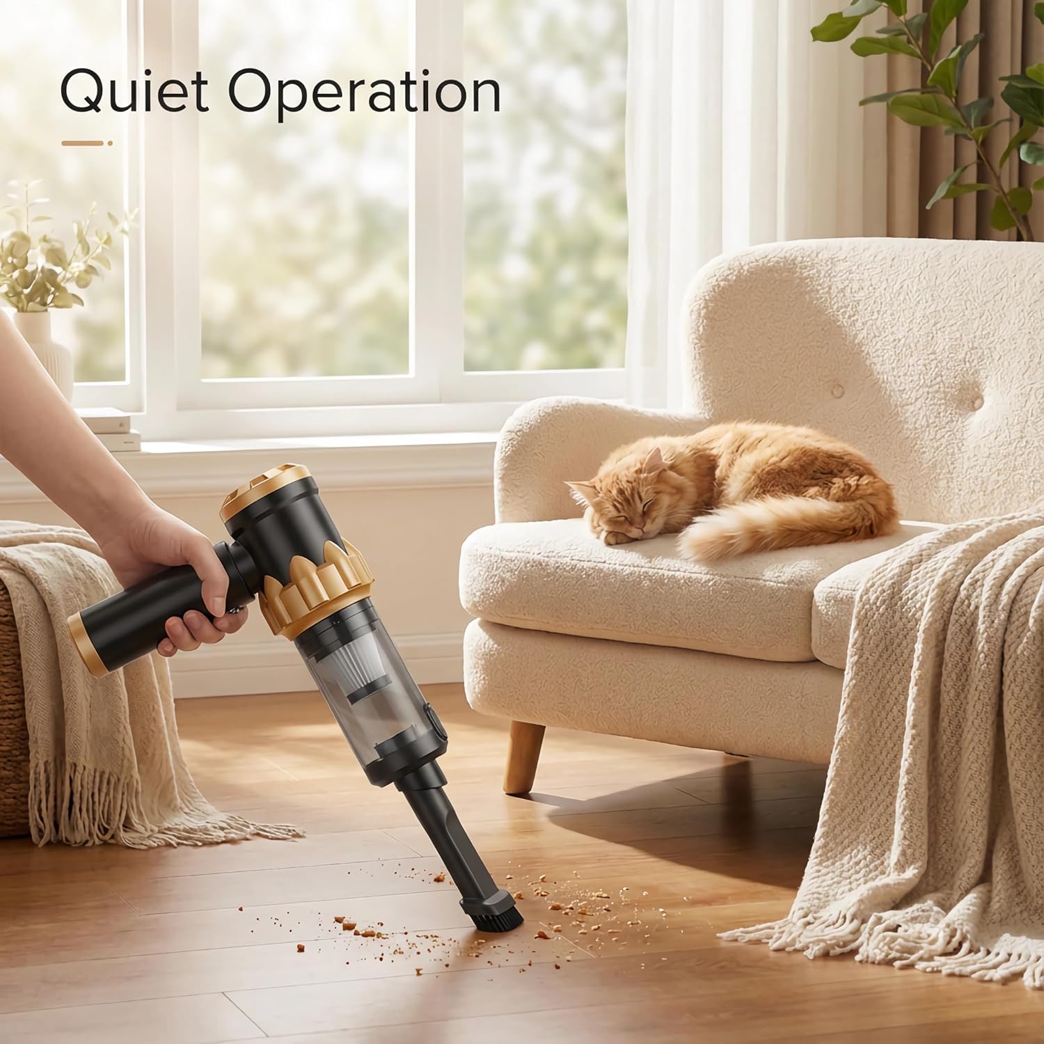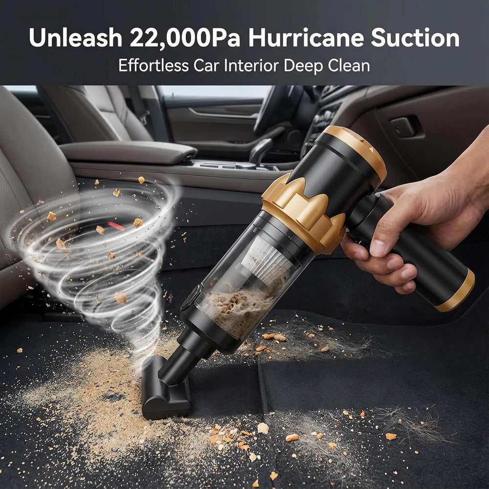 - Kabelloser und leiser Betrieb sowie Staubentfernung per Knopfdruck – Das kabellose Design, das speziell für Autos entwickelt wurde, ermöglicht einen einfachen Zugang zu engen Stellen mit einer Hand. Die Betriebsgeräusche bleiben unter 90 Dezibel,