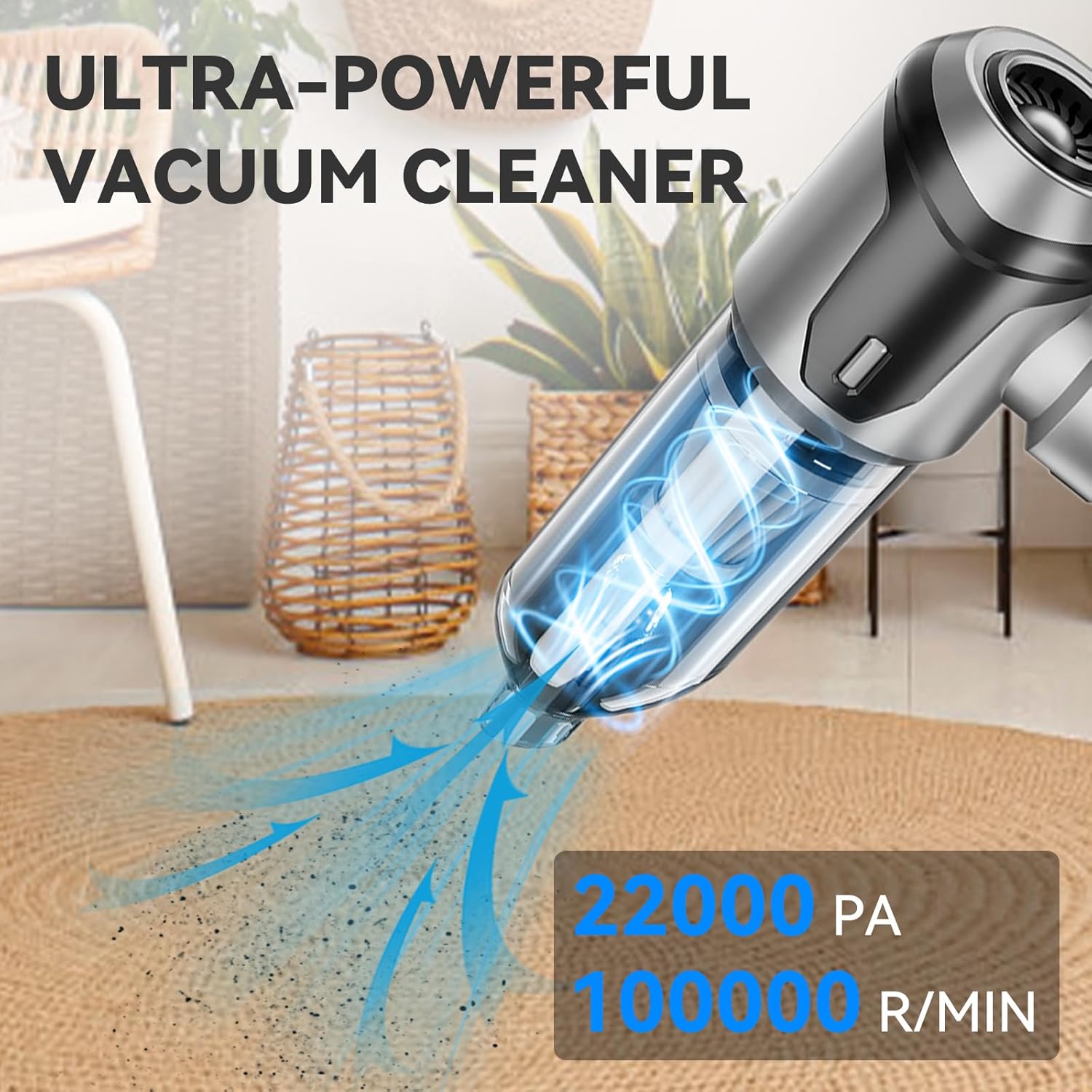 - 22000 PA STARKE SAUGLEISTUNG – Der Grixz Handstaubsauger ist mit einem 100-W-Hochleistungs-Hochgeschwindigkeitsmotor und einem Turbinenluftkanal-Design ausgestattet, mit einer Nenndrehzahl von 100.000 U/min und einer dauerhaften Saugleistung von 15.000