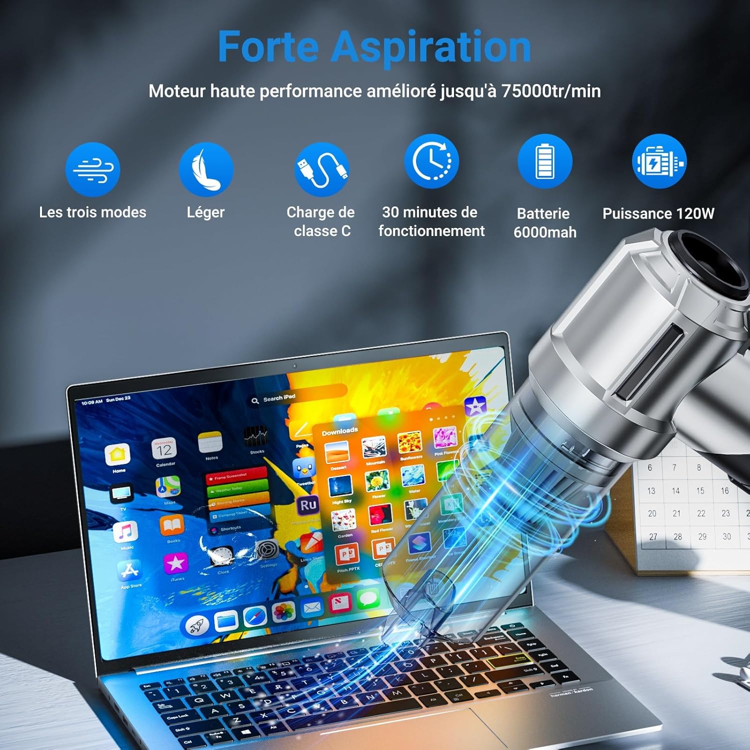 • 【Starke Absaugung, Tiefenreinigung】 28.000PA Starker Saugkraft, Handstaubsauger hat super klare Saugkraft, Ausgestattet mit einem hocheffizienten Bürstenloser Motor, bietet er eine starke Absaugung, um Staub und Schmutz von verschiedenen