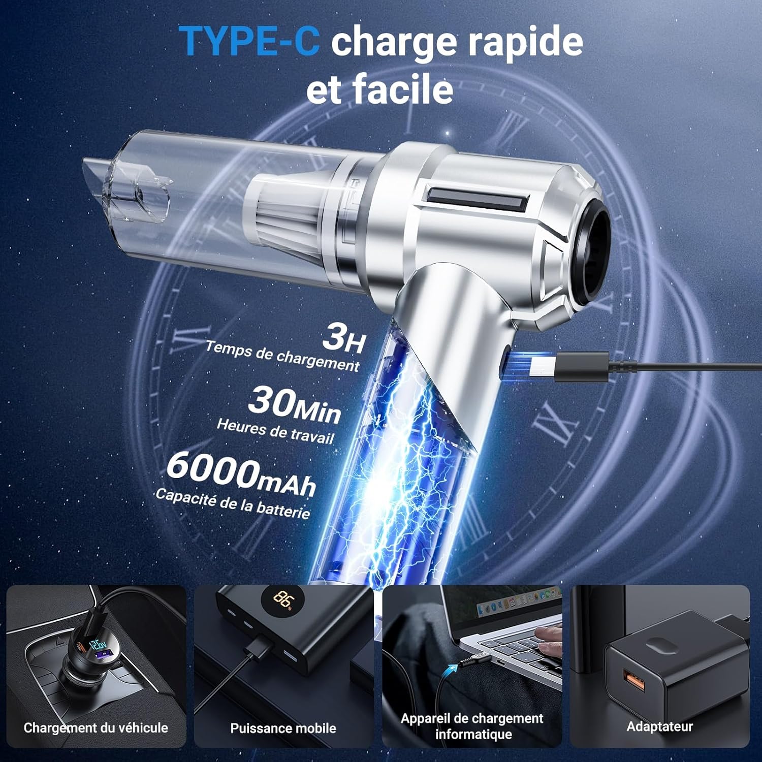 Handstaubsauger, 28000Pa Handstaubsauger Akku, 3 in 1 Faltbar Autostaubsauger, Mini Staubsauger mit