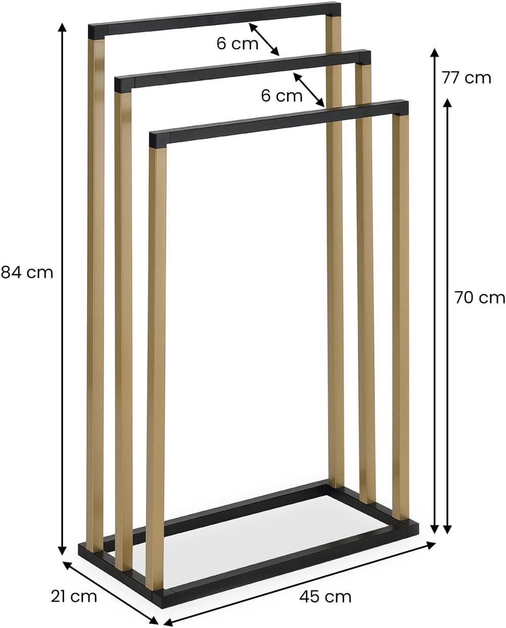 - Versetzte Handtuchstangen: Der freistehende Badetuchhalter mit 3 stufenförmigen Handtuchstangen ist aus Metall gefertigt und hochwertig schwarz/gold lackiert