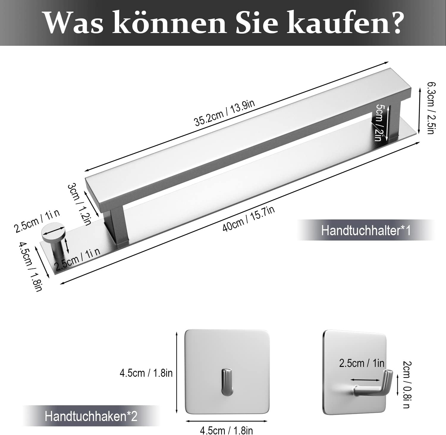 - 【Hochwertige Rohstoffe】Handtuchhalter bad ohne bohren aus hochwertigem Edelstahl SUS304,Dickeres Grösse für mehr Robustheit und Haltbarkeit.