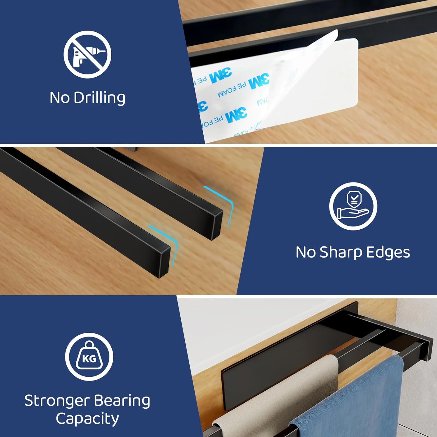 - 𝐏𝐚𝐬𝐭𝐞𝐧𝐢𝐧𝐬𝐭𝐚𝐥𝐥𝐚𝐭𝐢𝐨𝐧:Handtuchhalter können den Platz an der Wand voll ausnutzen, ohne Löcher zu bohren, Pasteninstallation ohne die Wand zu beschädigen, geeignet für glatte Fliesen, Glas und