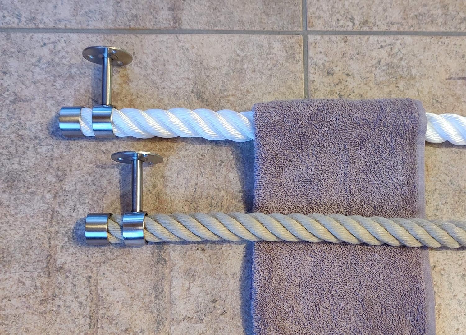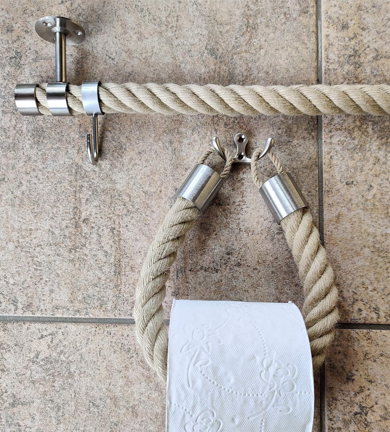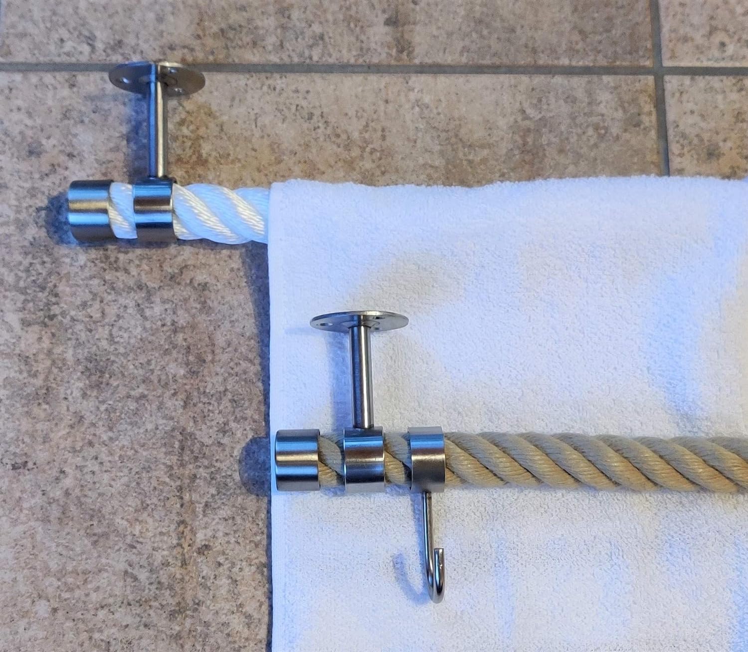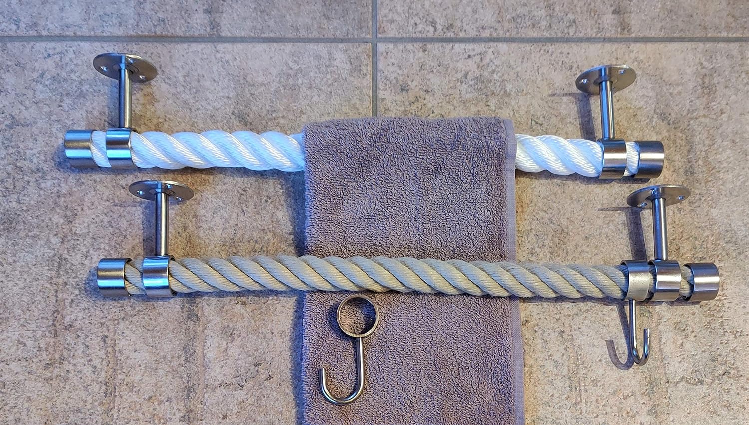 Handtuchhalter Seil Polyhanf PP-Multifil beige weiss Handtuch Duschtuch Edelstahl Haken Badezimmer T