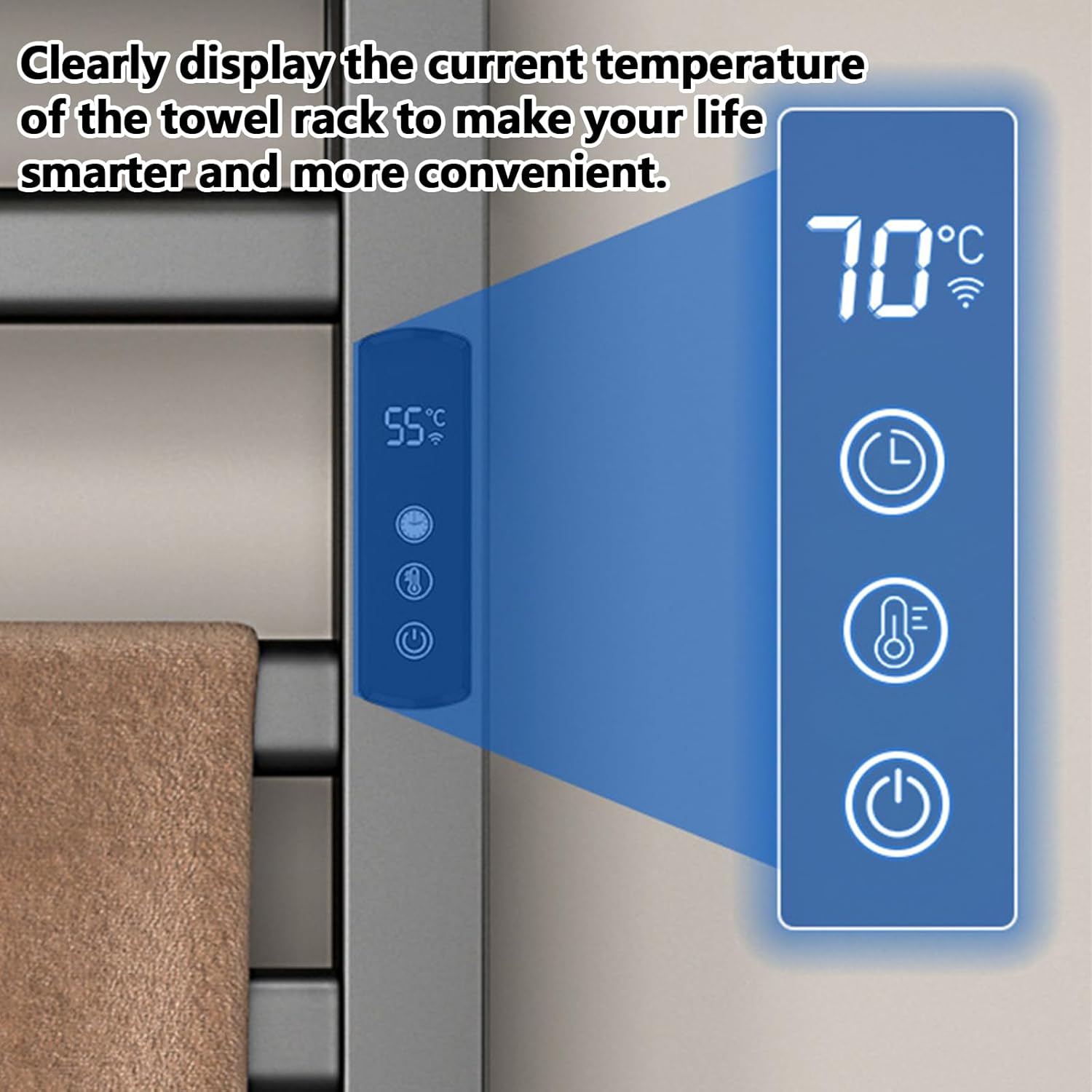 - 【Intelligente digitale LED-Temperaturregelung】Der Handtuchheizkörper verfügt über ein hochauflösendes Digitaldisplay, das die aktuelle Betriebstemperatur in Echtzeit anzeigt (einstellbar von 30 bis 70 °C). In Kombination mit einem