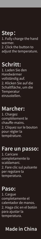 - 3 Heizstufen und Mehrfachschutz: Drücken Sie die Taschenheizung für mehr als 2 Sekunden, um sie ein- und auszuschalten. 3 Stufen von 45 ℃/113 F - 50 ℃/122 F - 55 ℃/131 F nach Ihrer Wahl, Sie können 5 ℃ durch jeden Klick einstellen. Mehrere