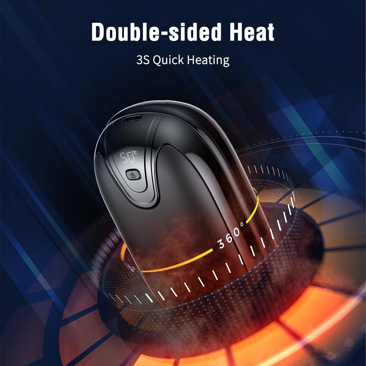 - Doppelseitiges 3S schnelles Aufheizen: Schalten Sie den wiederaufladbaren Handwärmer ein. Sofortige Erwärmung für 3 Sekunden. Handwärmer verteilt seine Wärme auf beiden Seiten, halten Ihre Hände warm. Es bietet eine sanfte und angenehme Wärme,
