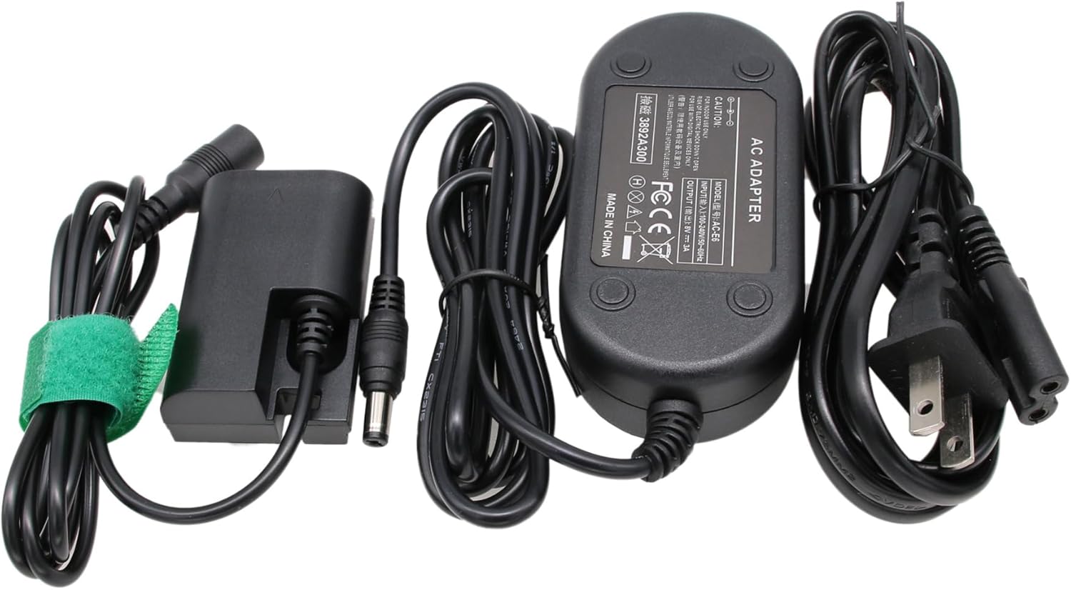 - Netzteil (AC-E6) an Dummy-Batterie des DR-E6-Kopplers, die als Ersatz für die Canon LP-E6-Batterie verwendet wird