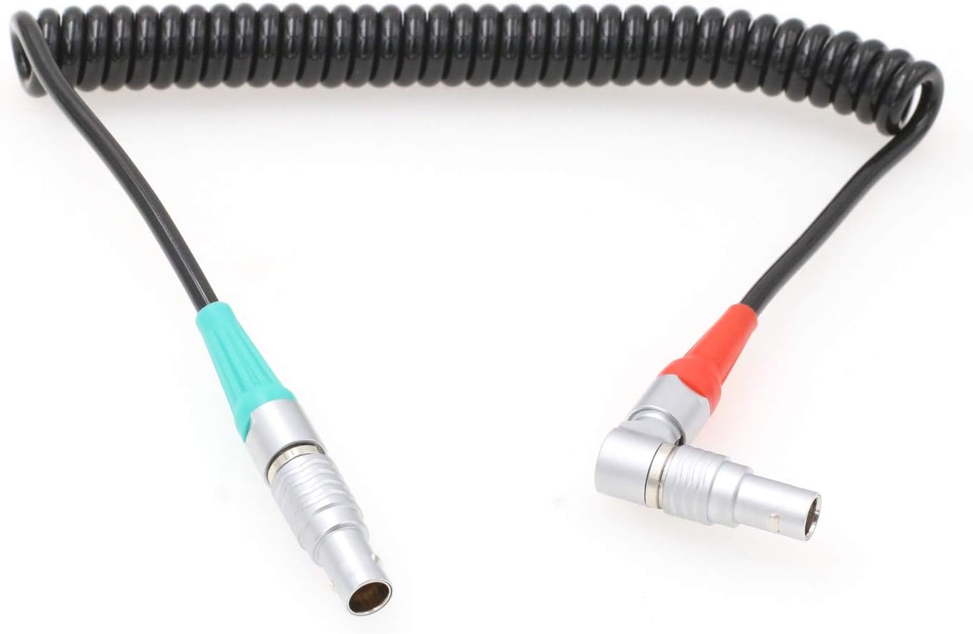 - Gerader Lemo5-Stecker (grüner Boot) für Timecode-Eingang, rechtwinkliger Lemo5-Stecker (roter Boot) für Timecode-Ausgabe