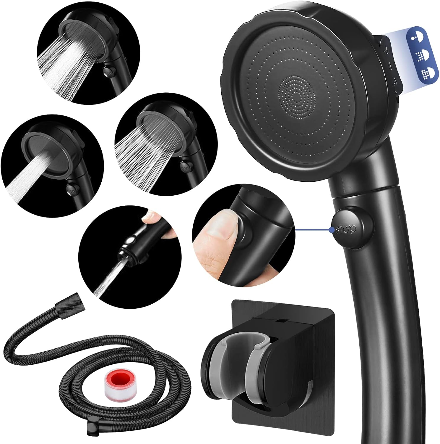 - ❤【Premium-Material】Der abnehmbare Duschkopf ist aus ABS-Material, das leicht und langlebig ist. Der 150 cm lange Edelstahlschlauch ist korrosions- und hochtemperaturbeständig. Die selbstklebende Halterung besteht aus wasserdichtem ABS-Material,
