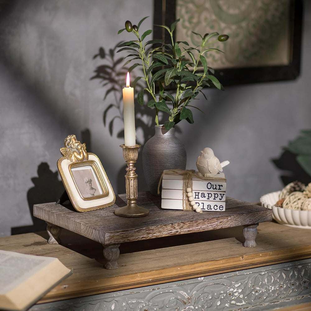 - EINZIGARTIGES 2-TYPEN-SOCKEL-DESIGN - Unser rechteckiger holzsockel enthält 2 arten von dekorsockeln, die sich perfekt an jede einrichtung anpassen. 4 kurze beine sind ideal für rustikale akzent mittelstück zähler mit pflanze, kerze oder